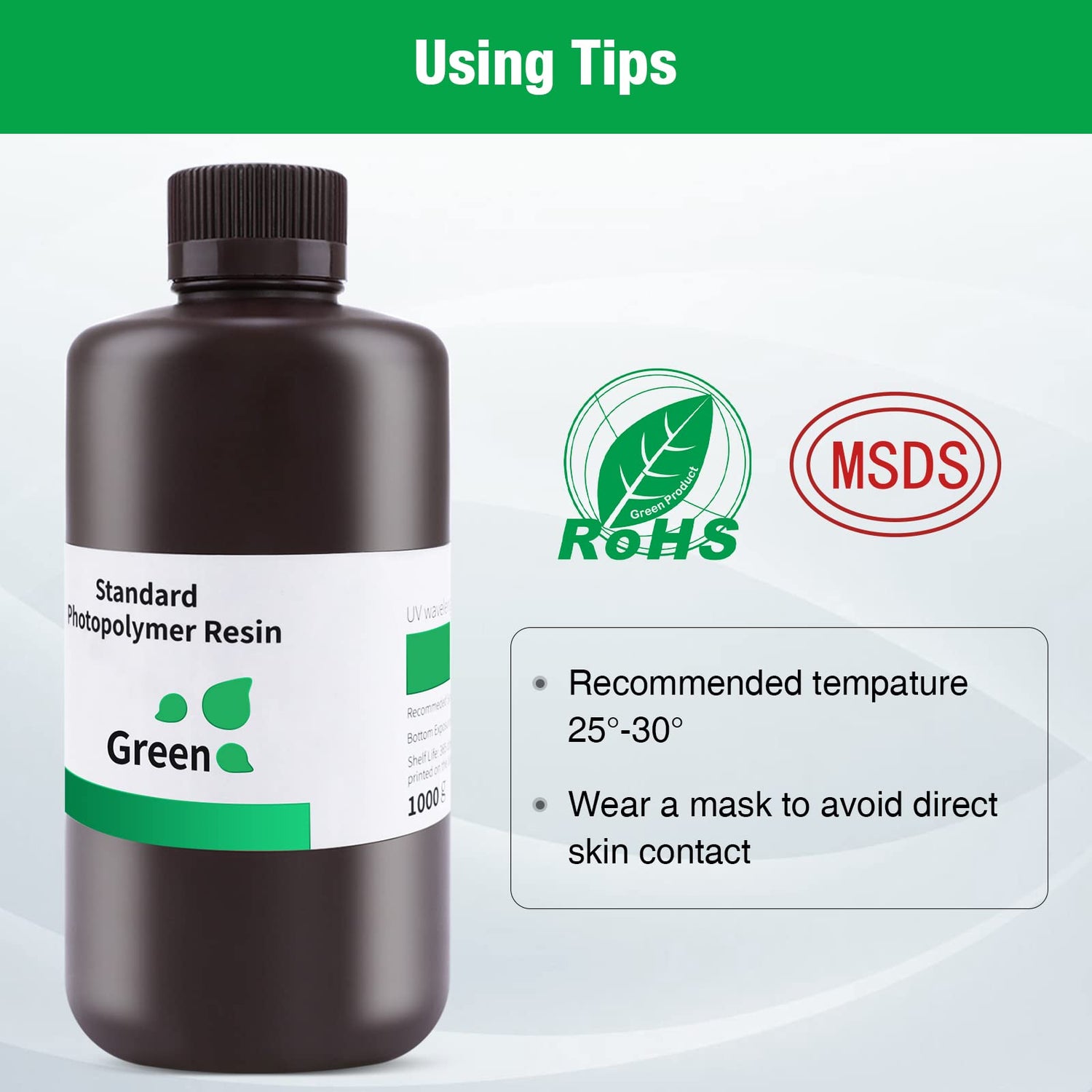 ELEGOO 3D Printer Resin, 405nm Fast UV Curing Standard Photopolymer Resin, High Precision, Non Toxic 3D Resin for Saturn 4/Saturn 3/Mars 5/Mars 4, LCD/MSLA/DLP 3D Printing, Clear Green 1000G