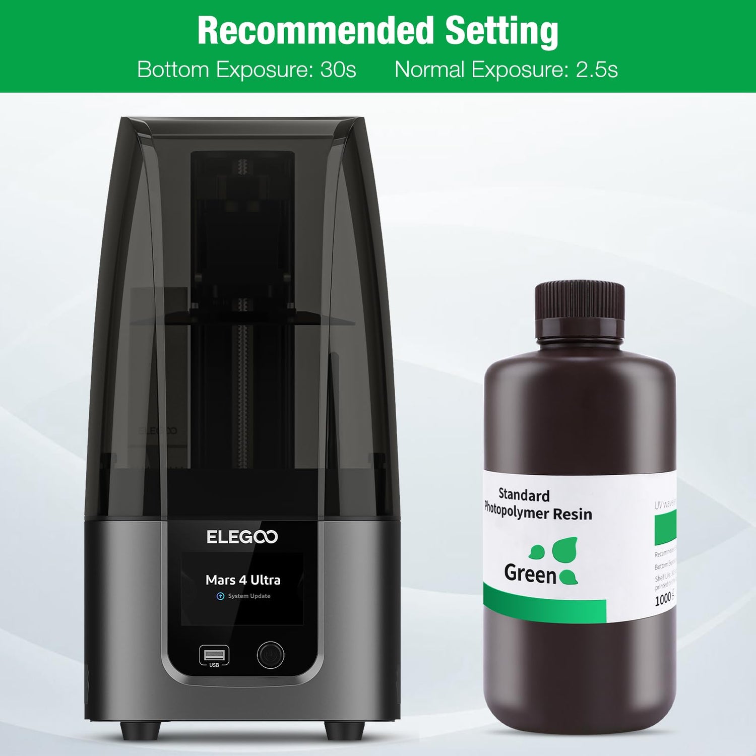 - 【High Compatibility】 ELEGOO standard resin is suitable for most DLP/LCD 3D printers. Works best with the ELEGOO LCD 3D Printers, such as Saturn 3, Saturn 3 Ultra, Mars 4, Mars 4 Ultra, Saturn 4, Saturn 4 Ultra, Mars 5, Mars 5 Ultra