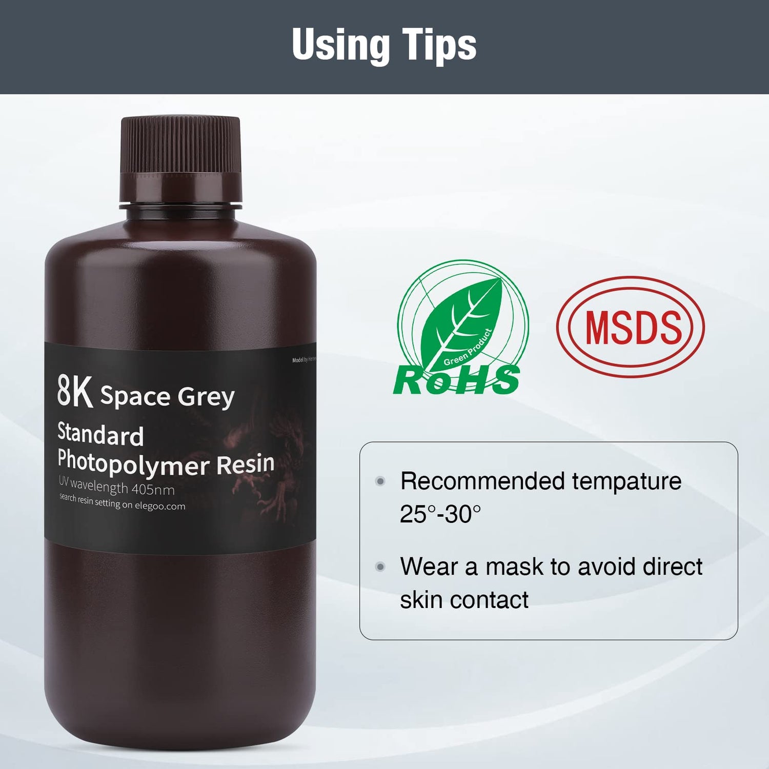 ELEGOO 8K Standard Resin, 405nm Rapid UV-Curing 3D Printer Resin, Higher Precision, Lower Shrinkage 3D Photopolymer Resin for 8K/12K/14K 3D Printer and LCD/MSLA/DLP 3D Printing, Space Grey 1000G