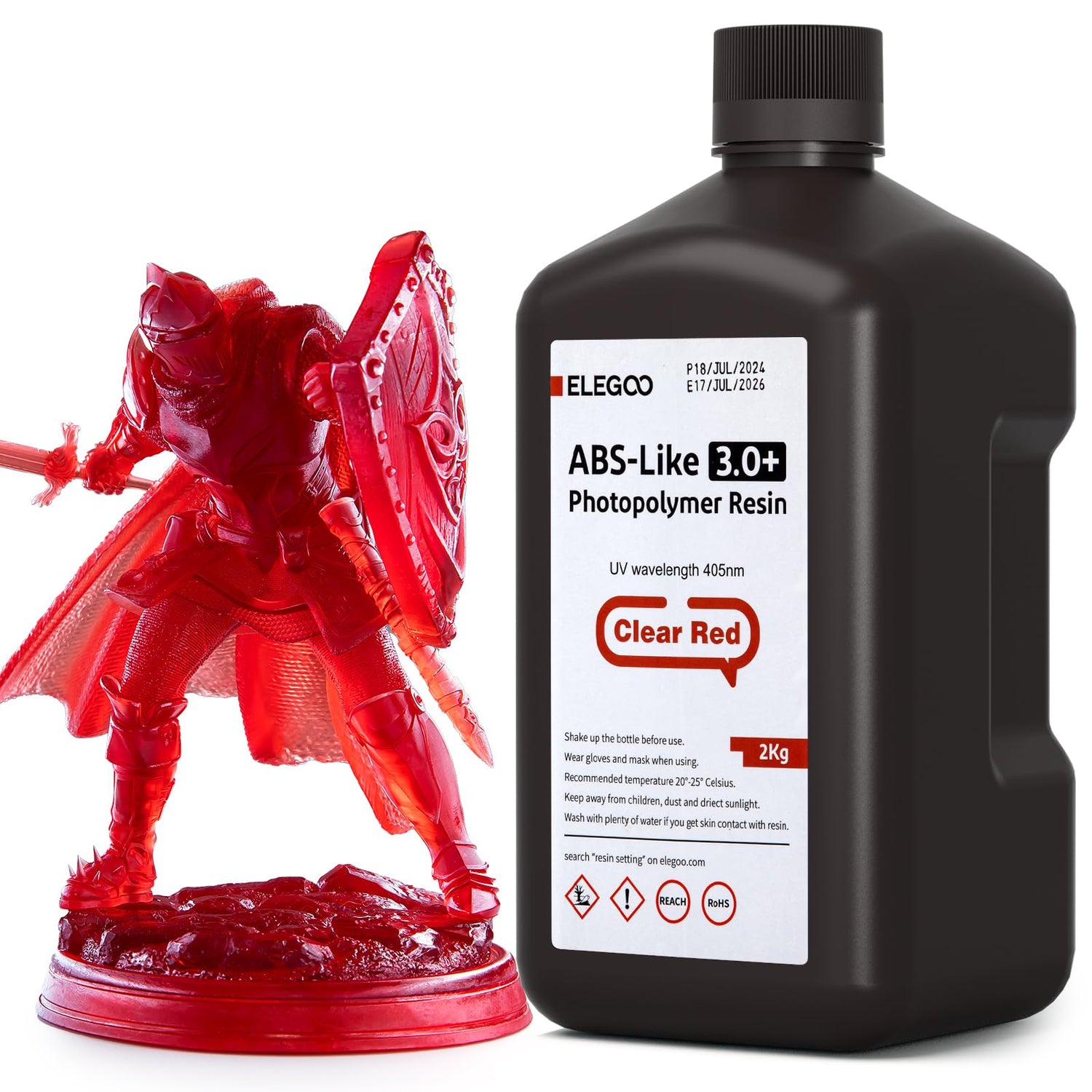 ELEGOO ABS-Like 3.0+ 3D Printer Resin Transparent Red 2000g, High Heat-Resistance 3D Printing Resin, Lower Viscosity and Shrinkage, 405nm LCD UV-Curing for MSLA/LCD/DLP 3D Printer