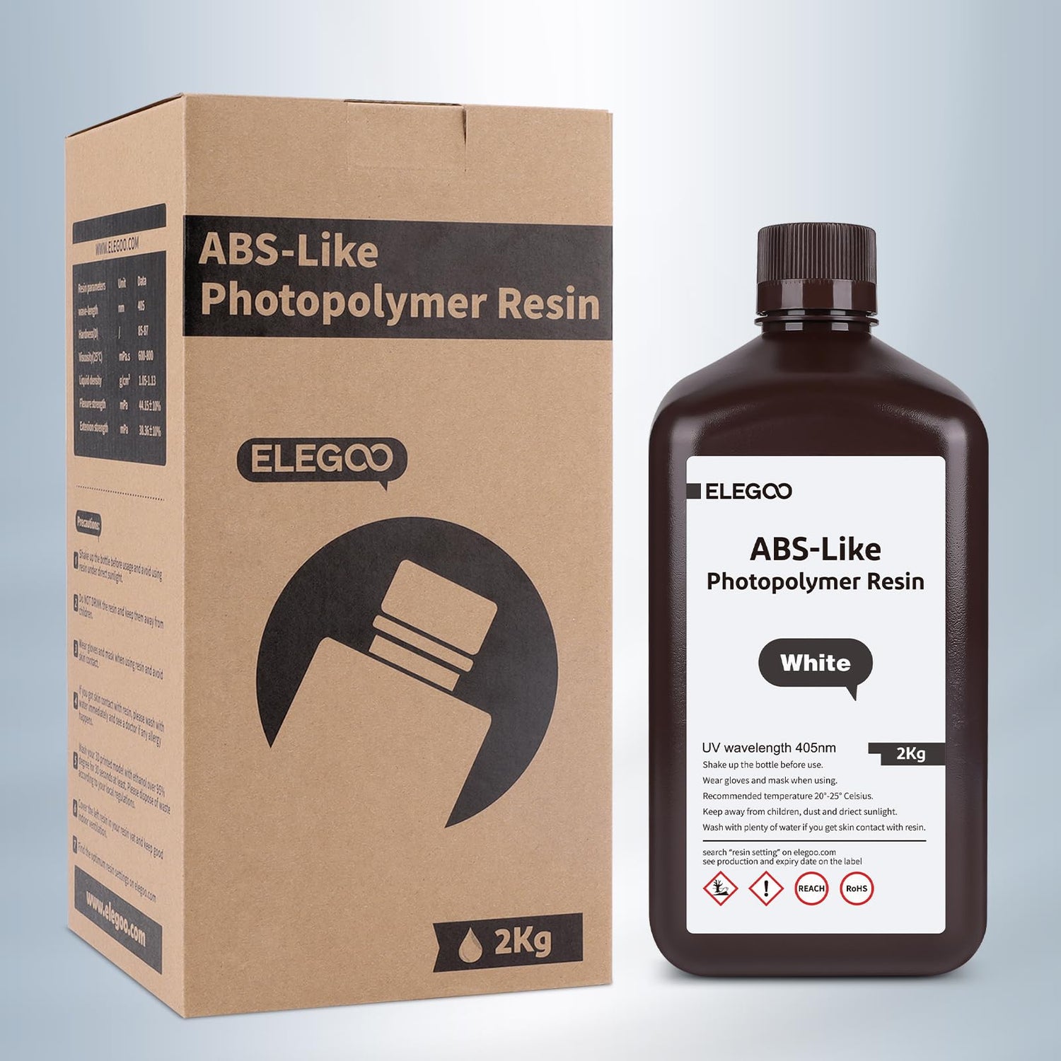 - 【High Precision and Low Shrinkage】 ELEGOO ABS Like resin has excellent stiffness and toughness, specially designed for reducing volume shrinkage during the photocuring process, which bring smooth surface with great resolution for print model.