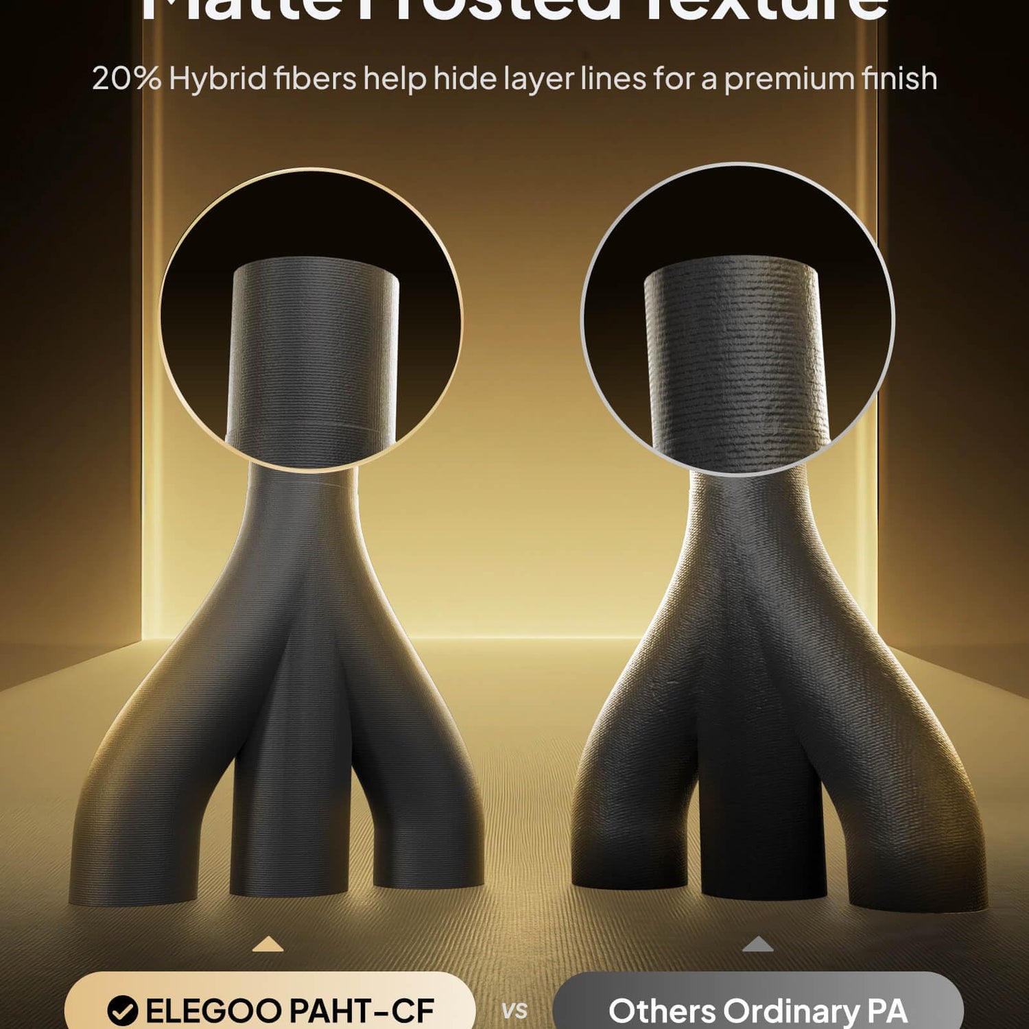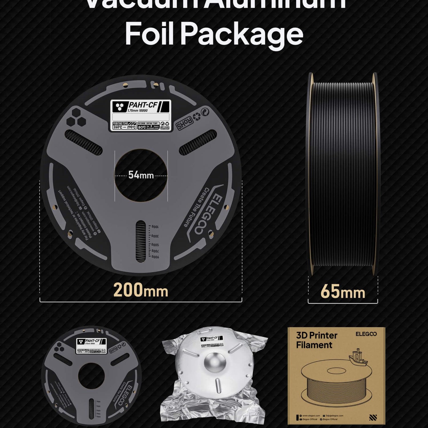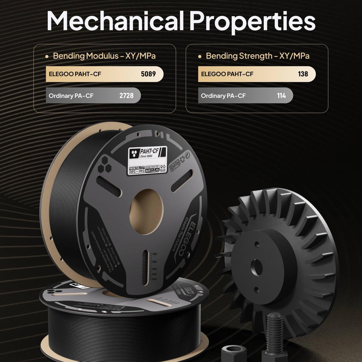 - Abrasion Resistance & Dimensional Accuracy - With carbon fiber added, ELEGOO PAHT-CF 3D printer filament excels in abrasion resistance and dimensional accuracy, making it ideal for gears, bearings, and structural parts that require both durability and precise fit