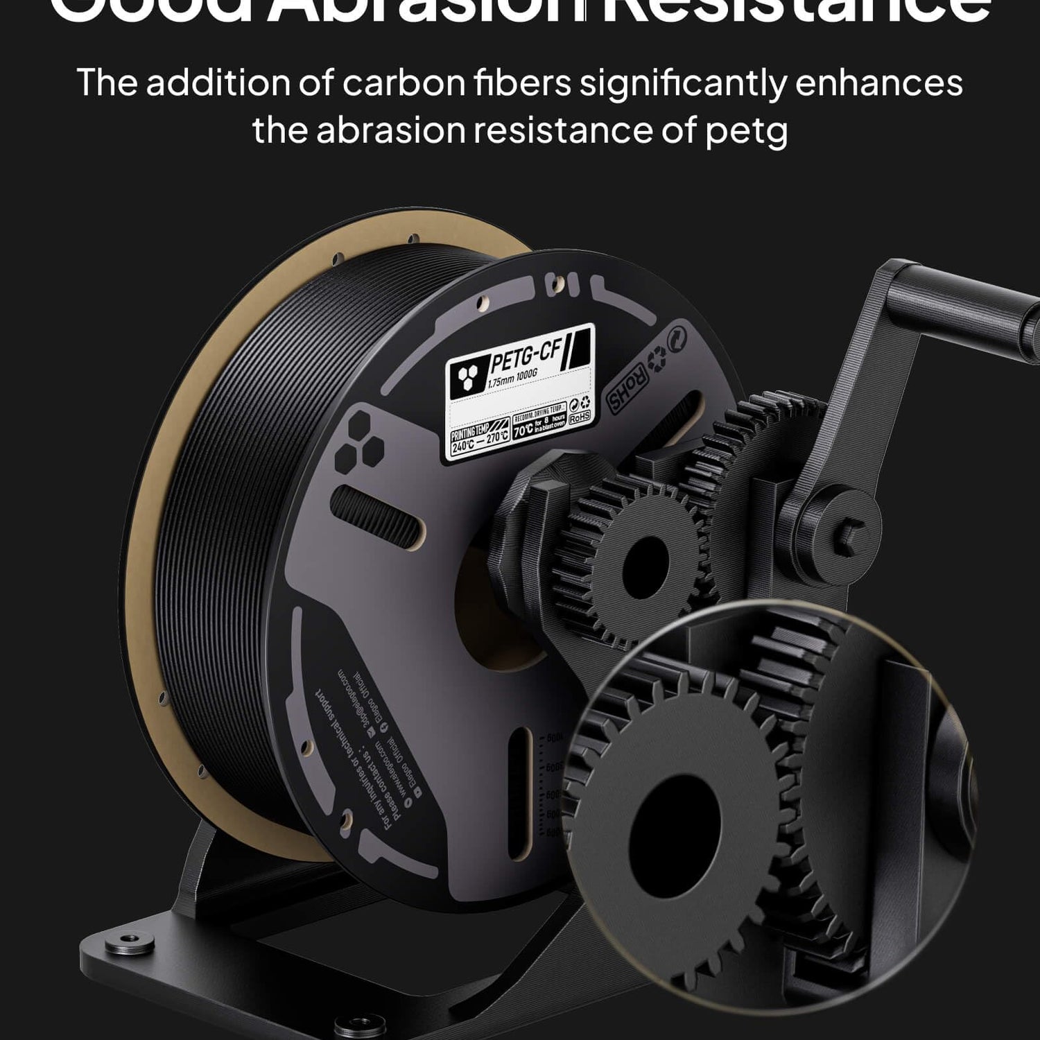 - Abrasion Resistance & Dimensional Accuracy - PETG-CF 3d printer filament excels in abrasion resistance and dimensional accuracy, making it ideal for gears, bearings, and structural parts that require both durability and precise fit