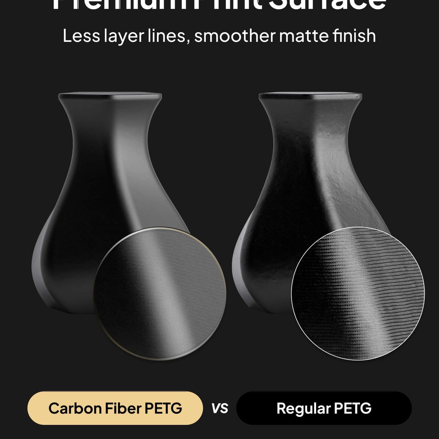 - Premium Print Surface - Carbon fiber brings a distinct, fine matte texture that reduces visible layer lines, ensuring a refined and professional finish perfect for both functional and aesthetic parts