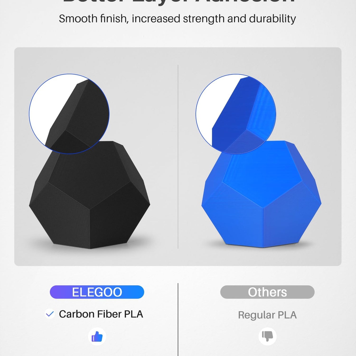 - EXCELLENT MECHANICAL PROPERTIES: Reinforced with carbon fiber, ELEGOO PLA-CF delivers outstanding strength and stiffness, perfect for printing highly durable and impact-resistant parts