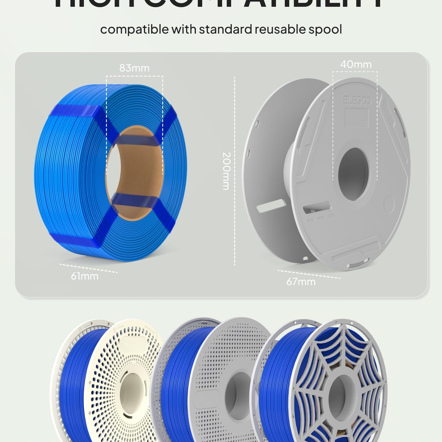 - SUPERIOR COMPATIBILITY - ELEGOO PLA Basic filaments are wound onto a cardboard core, fully compatible with reusable spool of ELEGOO, Bambu Lab, eSun and more. You can also print your own spool for seamless use with most 3D printers