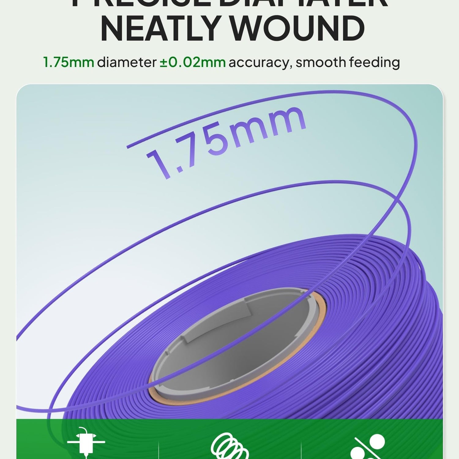 - PRECISION DIAMETER, LESS TANGLE - 1.75mm diameter with ±0.02mm accuracy, outstanding tolerance and consistency, neatly wound and less tangle, ensures smooth feeding, minimizing clogging and improving print stability for flawless results