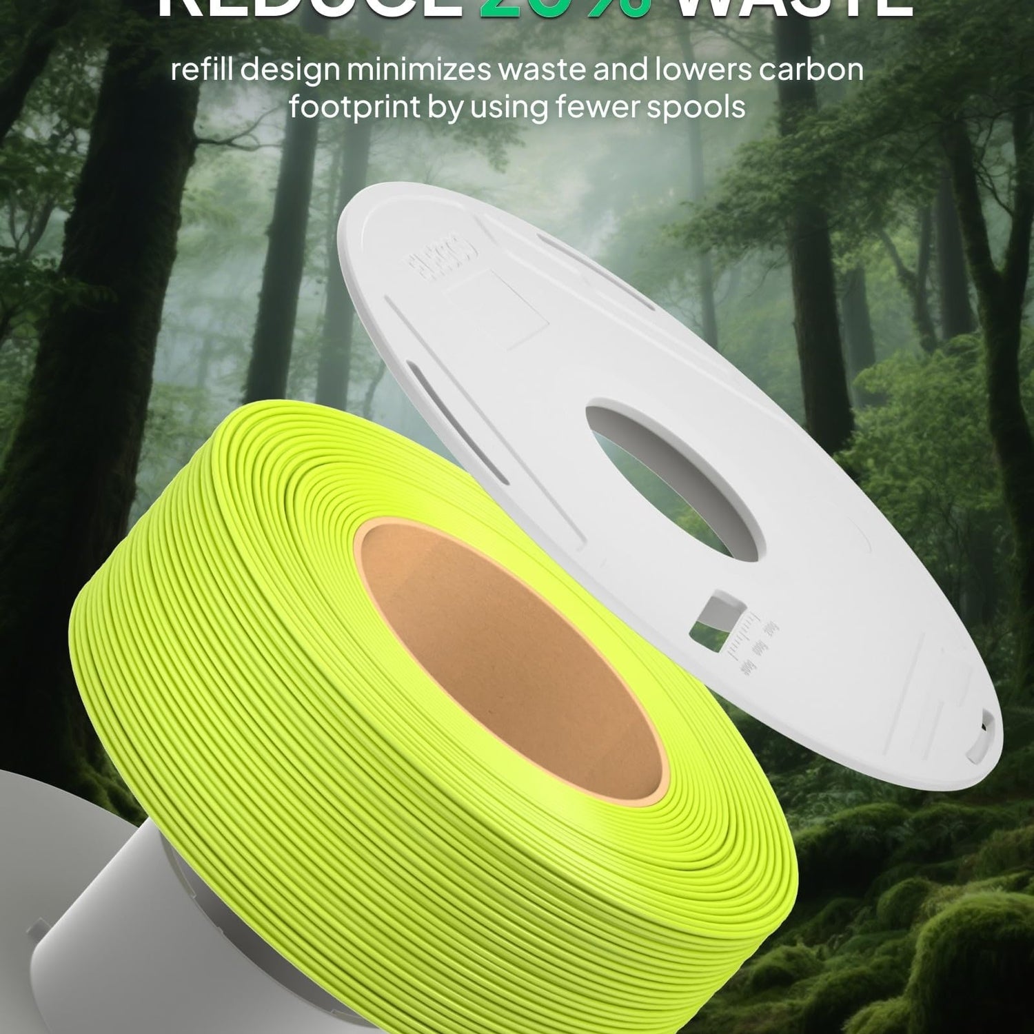 - REDUCE WASTE WITH REFILL DESIGN - ELEGOO PLA Basic Refill offers a more sustainable alternative to traditional spooled filament. By eliminating the need of spools, minimizes plastic waste and lowers carbon footprint, allowing you to enjoy high-quality printing while reducing environmental impact