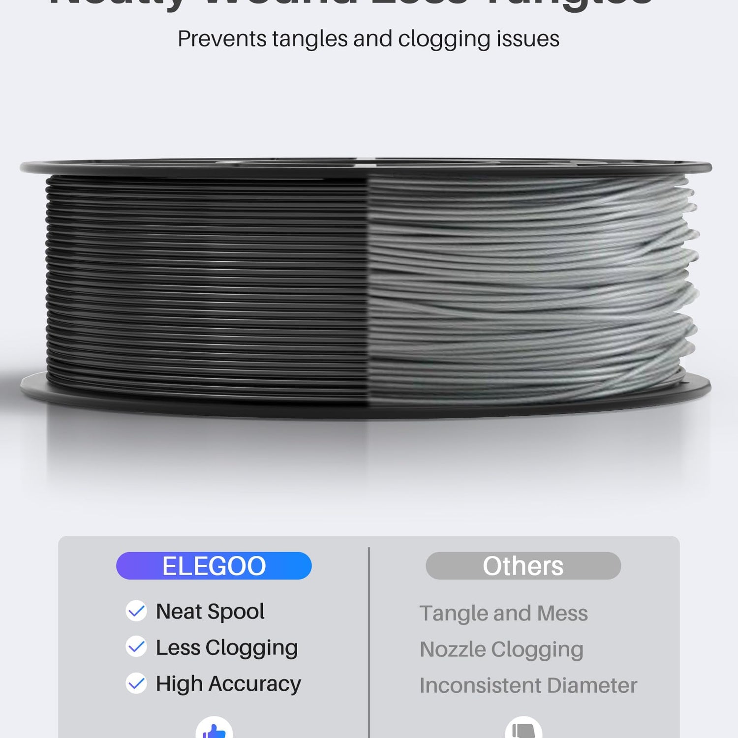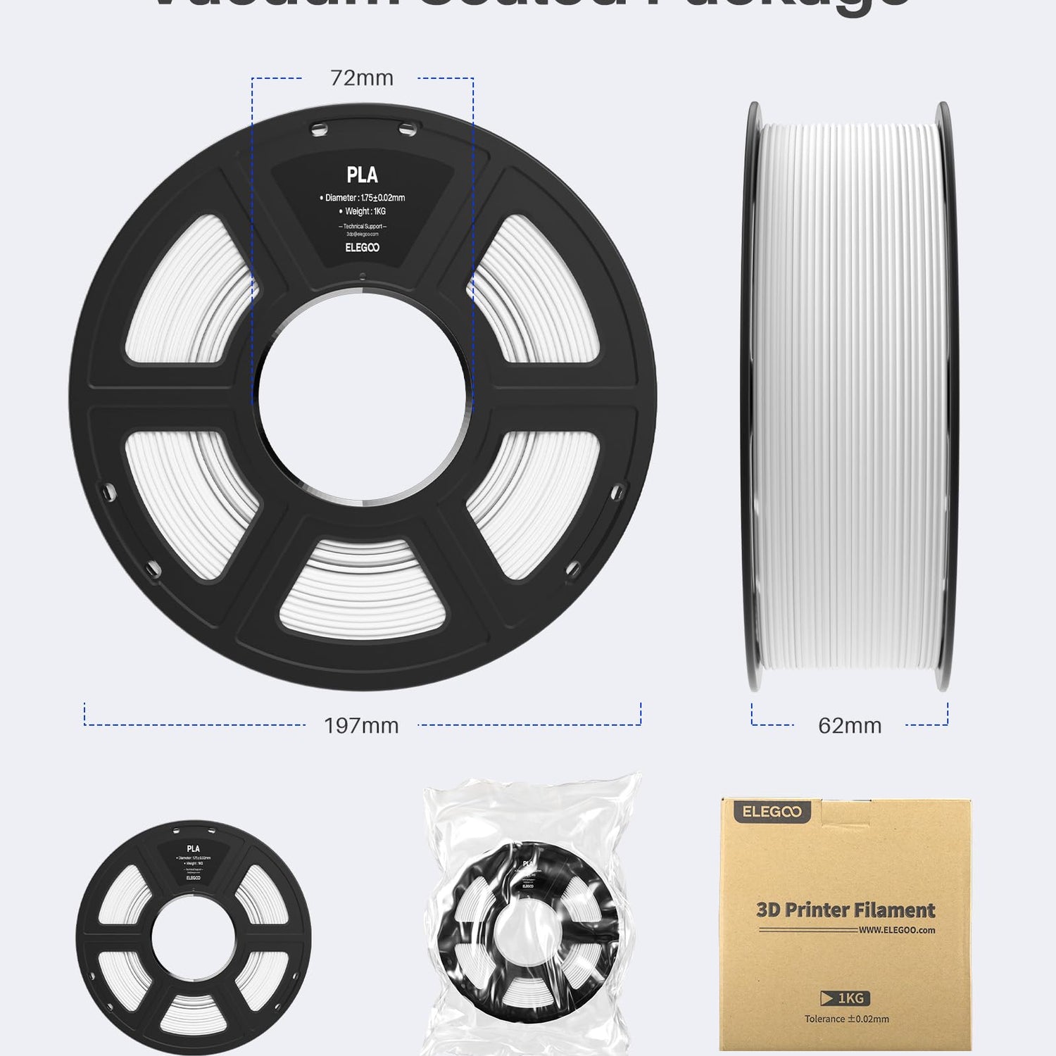 - NO CLOGGING & NO BUBBLE: ELEGOO PLA Filament is complete dried before packaging and vacuum sealed well to protect the filament from moisture, no clogging and bubbling problems