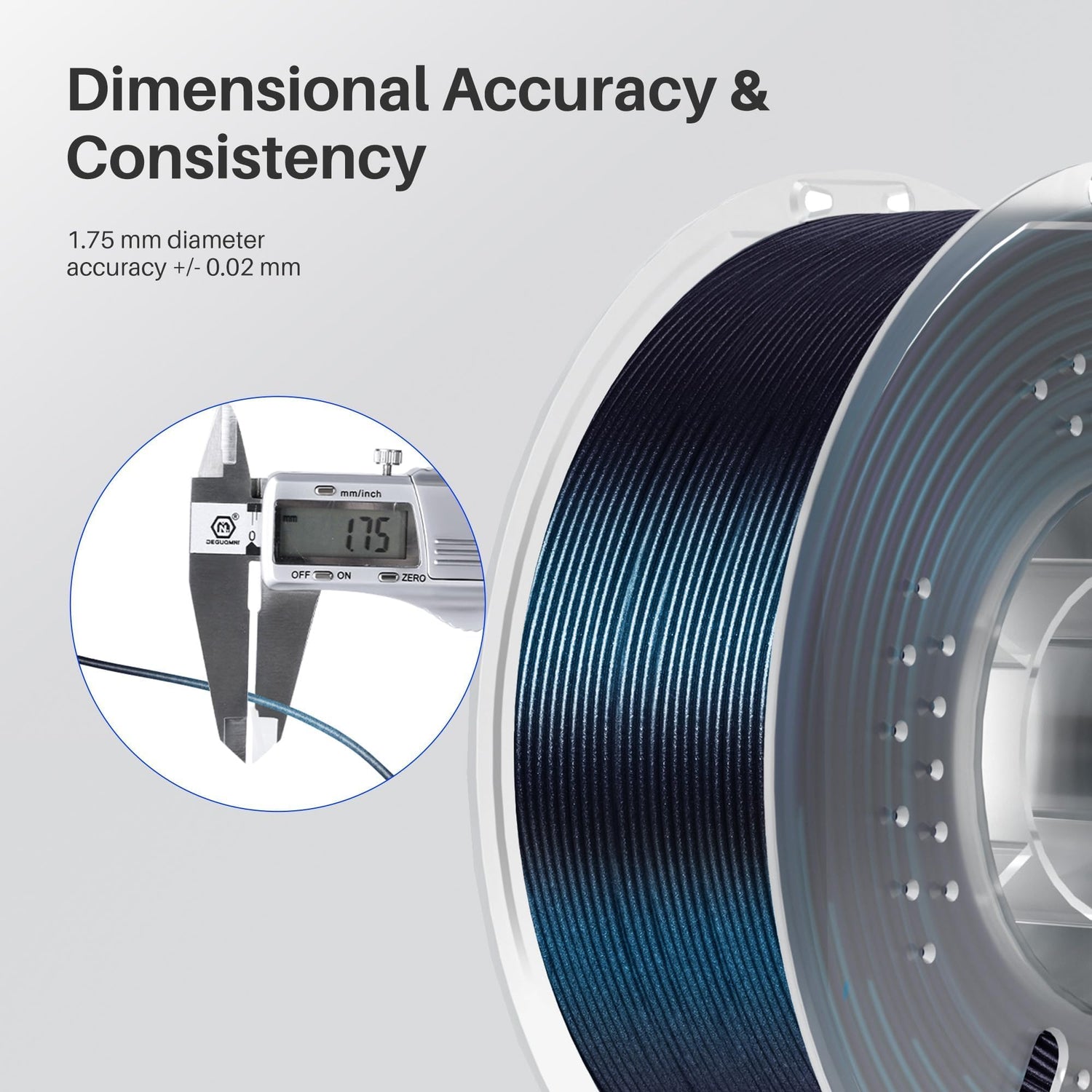 - DIMENSIONAL ACCURACY & CONSISTENCY: Strict tolerances guarantee these PLA filaments of 1.75 mm diameter much smoother and more stable printing with the dimensional accuracy of +/- 0.02 mm. Universal compatibility with most of the 1.75mm FDM 3D printers