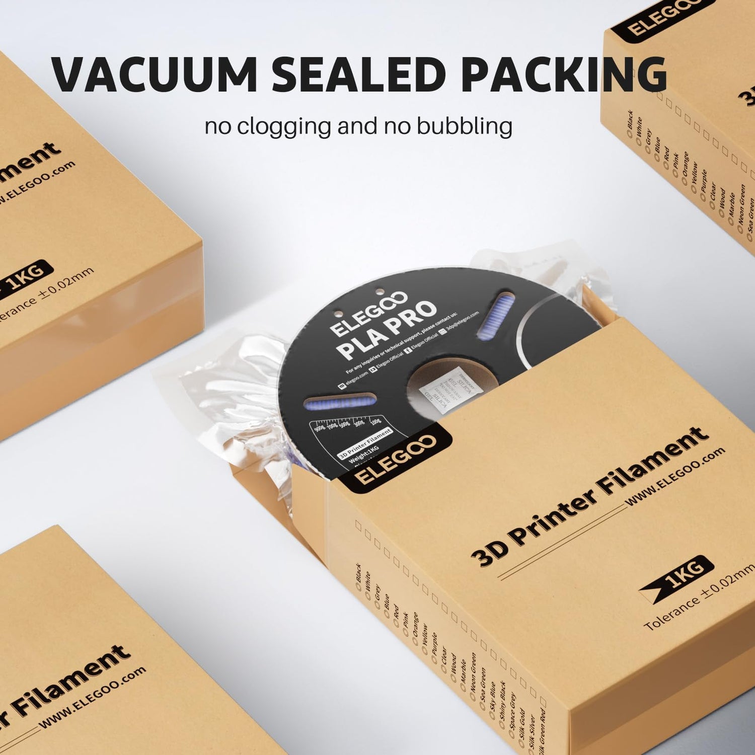 - 【Reliable Bed Adhesion】ELEGOO PLA PRO is made of top quality pure pla material, prints can adhere firmly to the bed, preventing warping and detachment issues. Enjoy hassle-free 3D printing with a reliable first layer