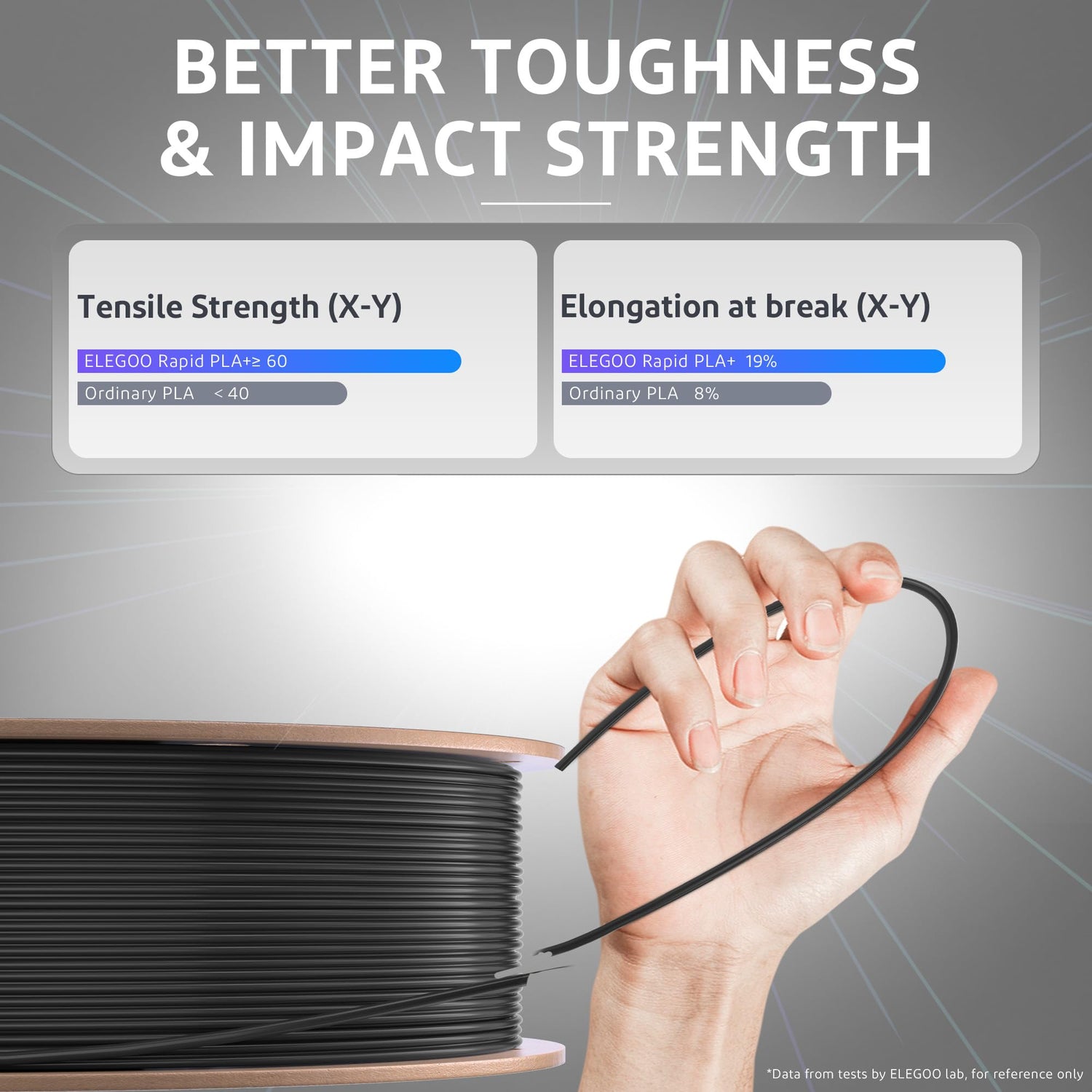 - ENHANCED STRENGTH & TOUGHNESS: ELEGOO RAPID PLA plus filament features high flexural modulus and elongation at break, which makes it resistant to brittleness and cracking, bringing excellent results for printing functional parts
