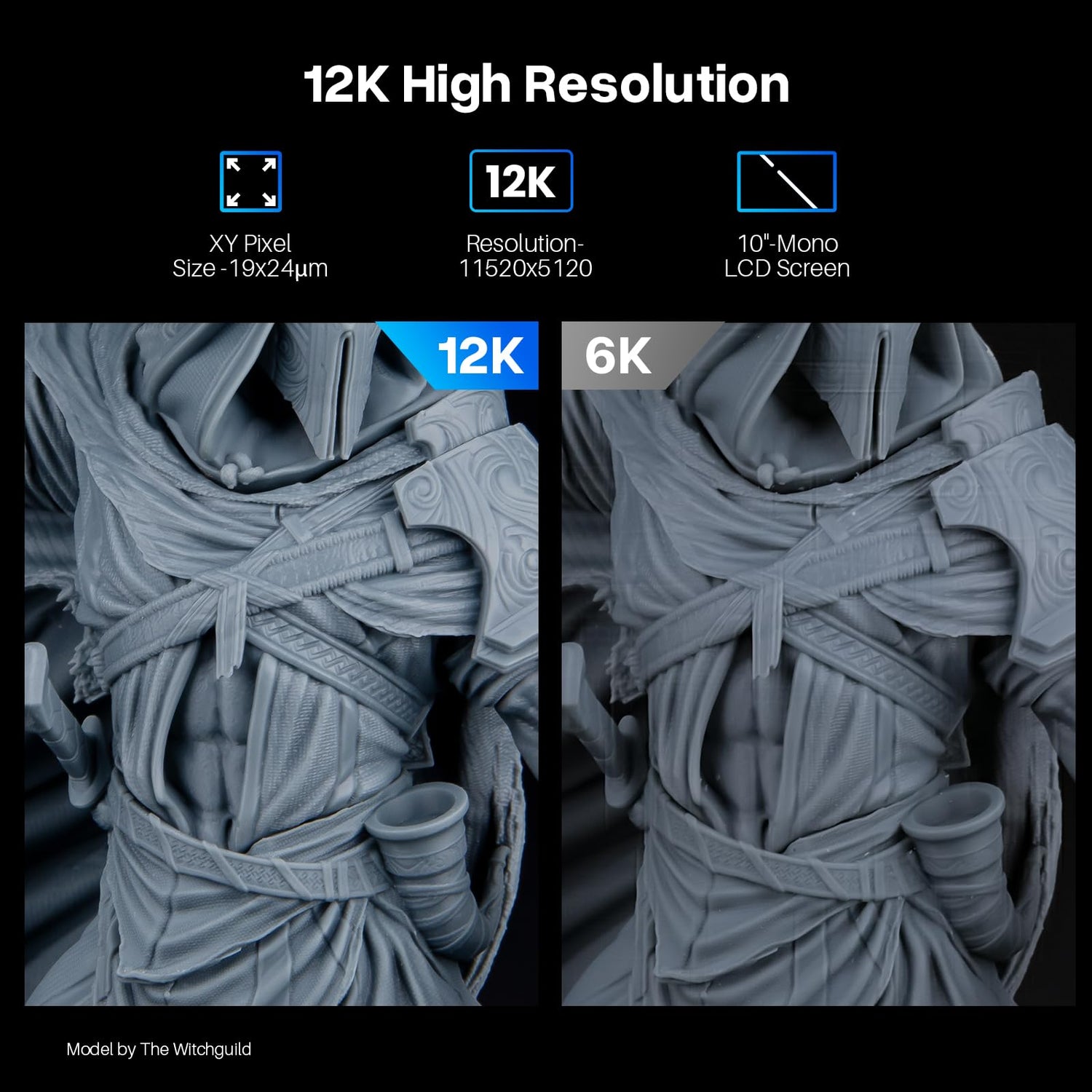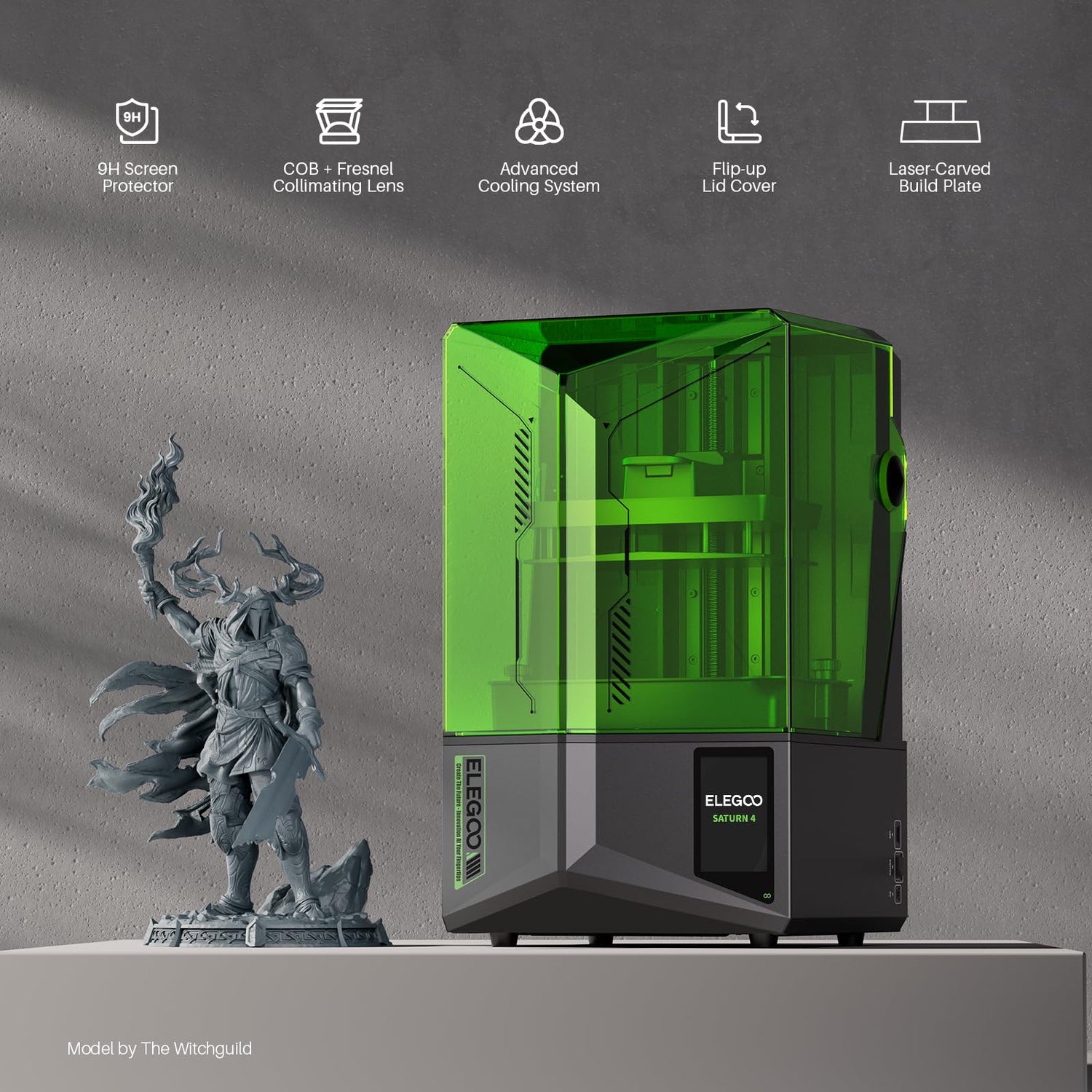 - Intricate Detailed Printing: The ELEGOO Saturn 4 MSLA 3D printer is outfitted with a 10-inch 12K mono LCD, enabling the effortless production of high-precision models. A combination of COB light source and Fresnel collimating lens also ensure each print is produced with exceptional clarity and intricate detail.
