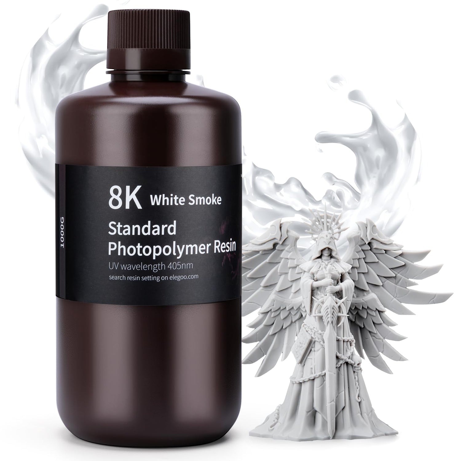 ELEGOO Standard 8K 3D Printer Resin 1000g White Smoke, 405nm Highest Precision Resin Rapid Printing Low Shrinkage, UV-Curing for 8K/12K/14K High Resolution LCD 3D Printer