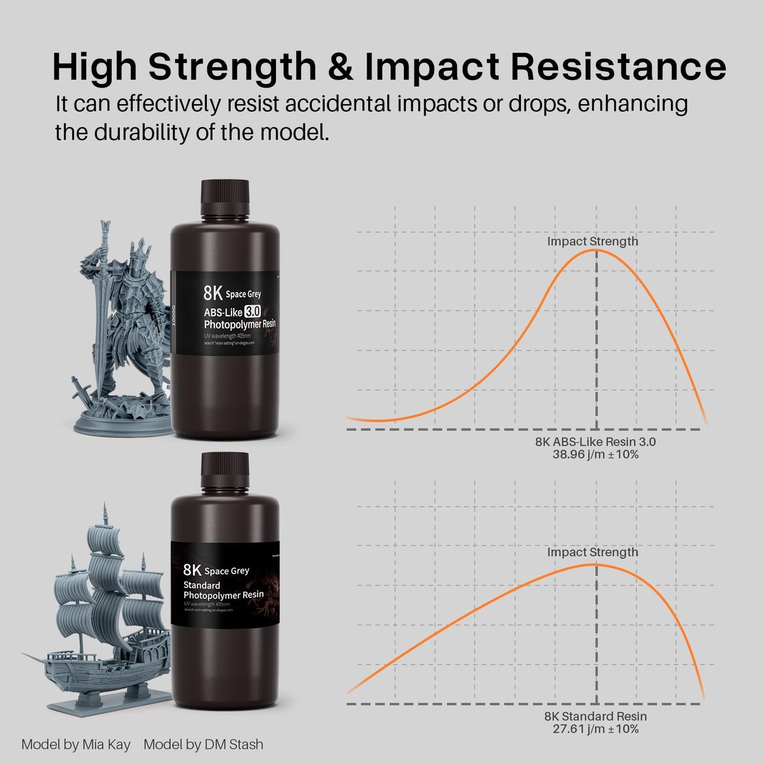 - 【High Toughness and Ductility】 ELEGOO ABS-Like 3.0 8K Resin offers enhanced toughness and ductility, making it less prone to deformation and more stable in performance. More durability. it is ideal for creating more complex and intricate models.