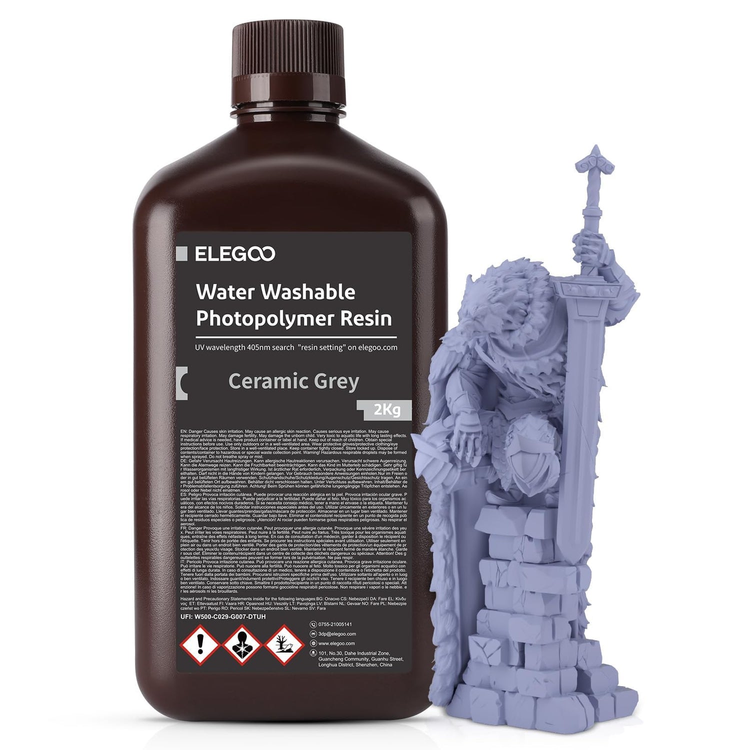 ELEGOO Water Washable 3D Printer Resin 2000g, Precise Printing Liquid Photopolymer Resin, Low Shrinkage 405nm Curing Resin for LCD 3D Printer, Grey