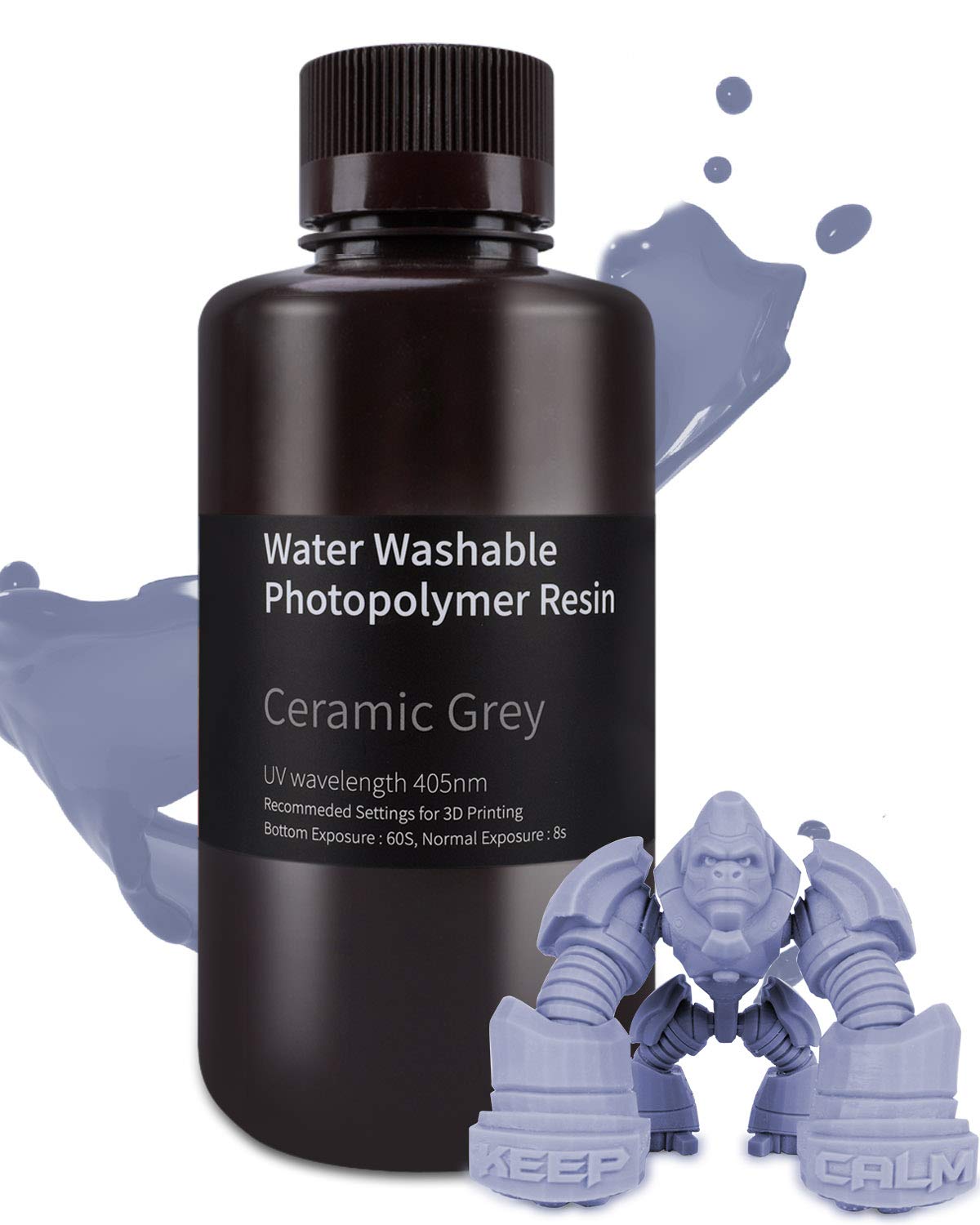 ELEGOO Water Washable 3D Printer Resin 500g Grey, Rapid Precise Printing Photopolymer Resin 405nm UV-Curing Resin for LCD/DLP/MSLA 3D Printer
