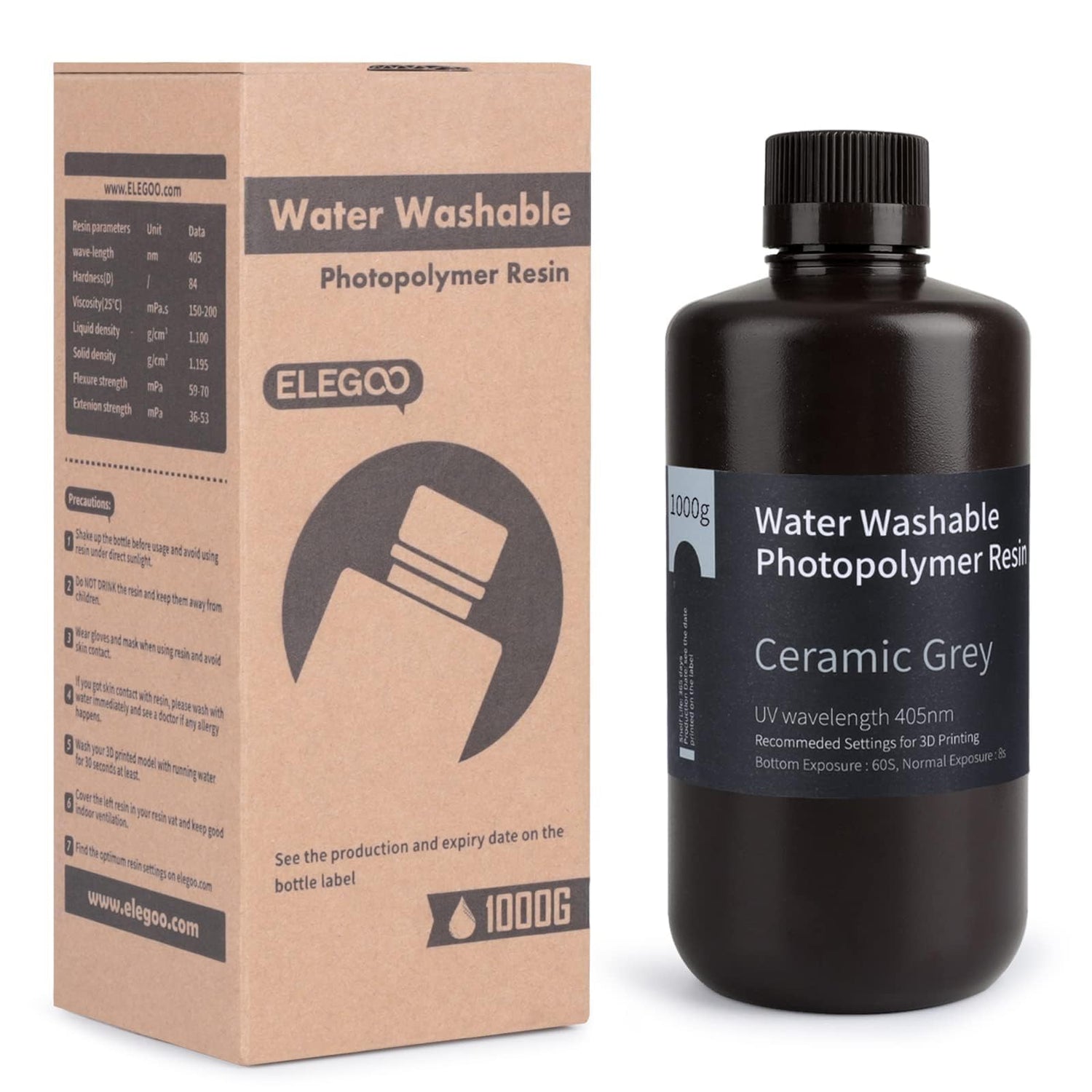 - 【Easy to clean, easy to use】 Compared to other kinds of resins, ELEGOO water washable resins are easy to use, do not need alcohol or IPA to clean, just need to clean with tap water, saving you the cost of alcohol or IPA,and save your time.