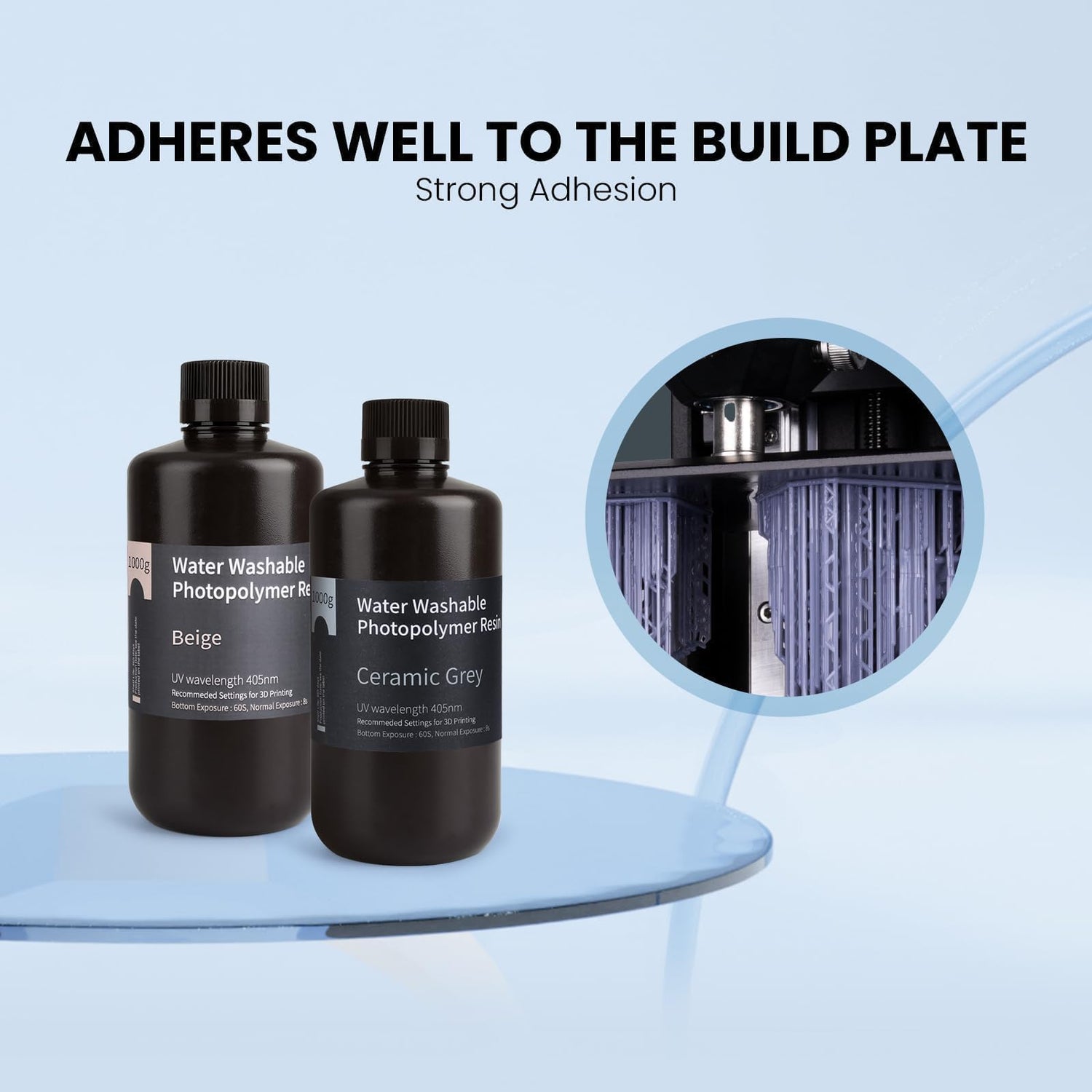 - 【Easy to clean, easy to use】 Compared to other kinds of resins, ELEGOO water washable resins are easy to use, do not need alcohol or IPA to clean, just need to clean with tap water, saving you the cost of alcohol or IPA,and save your time.