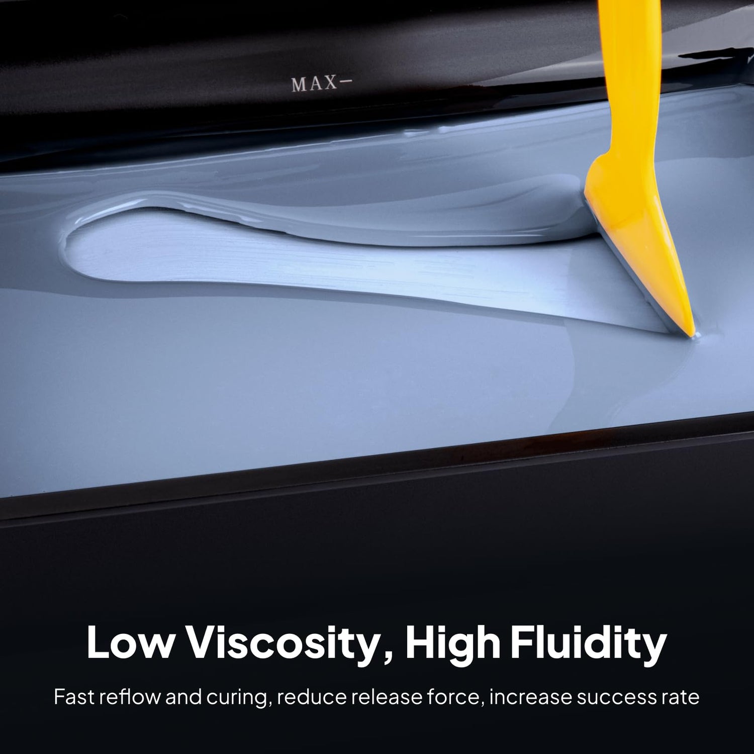 - 【Low Viscosity, High Fluidity】This ELEGOO 3D printer resin has good fluidity and its viscosity is significantly lower than other brands. It can reflow and solidify quickly, reduce the release force after resin molding, and effectively improve the success rate of model printing