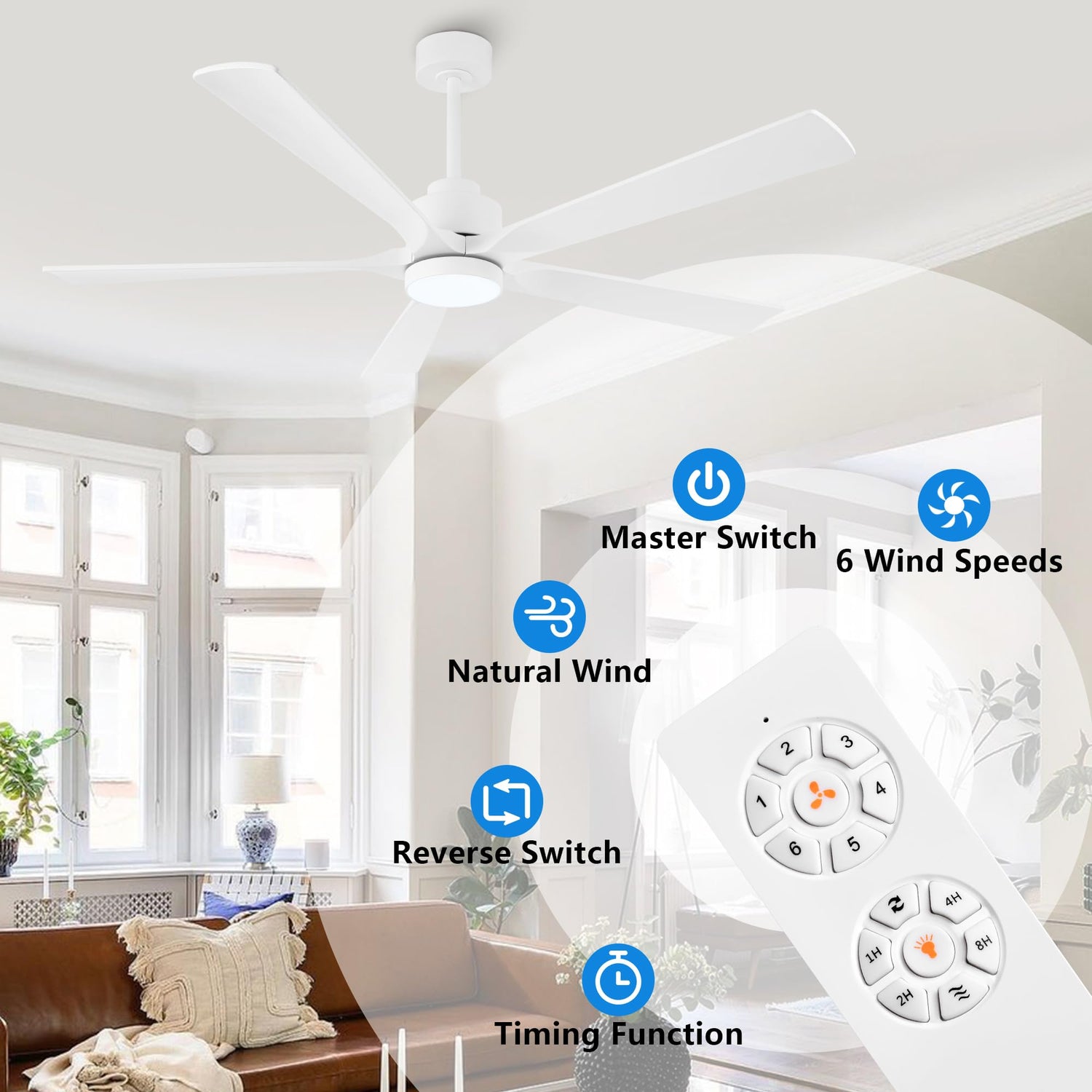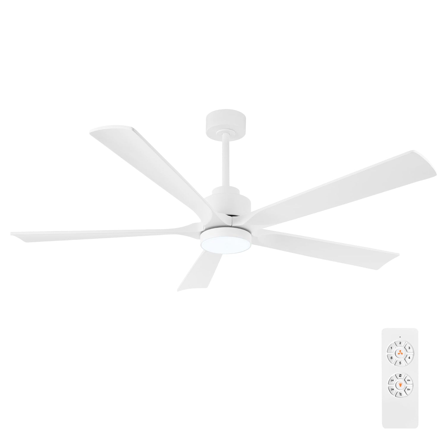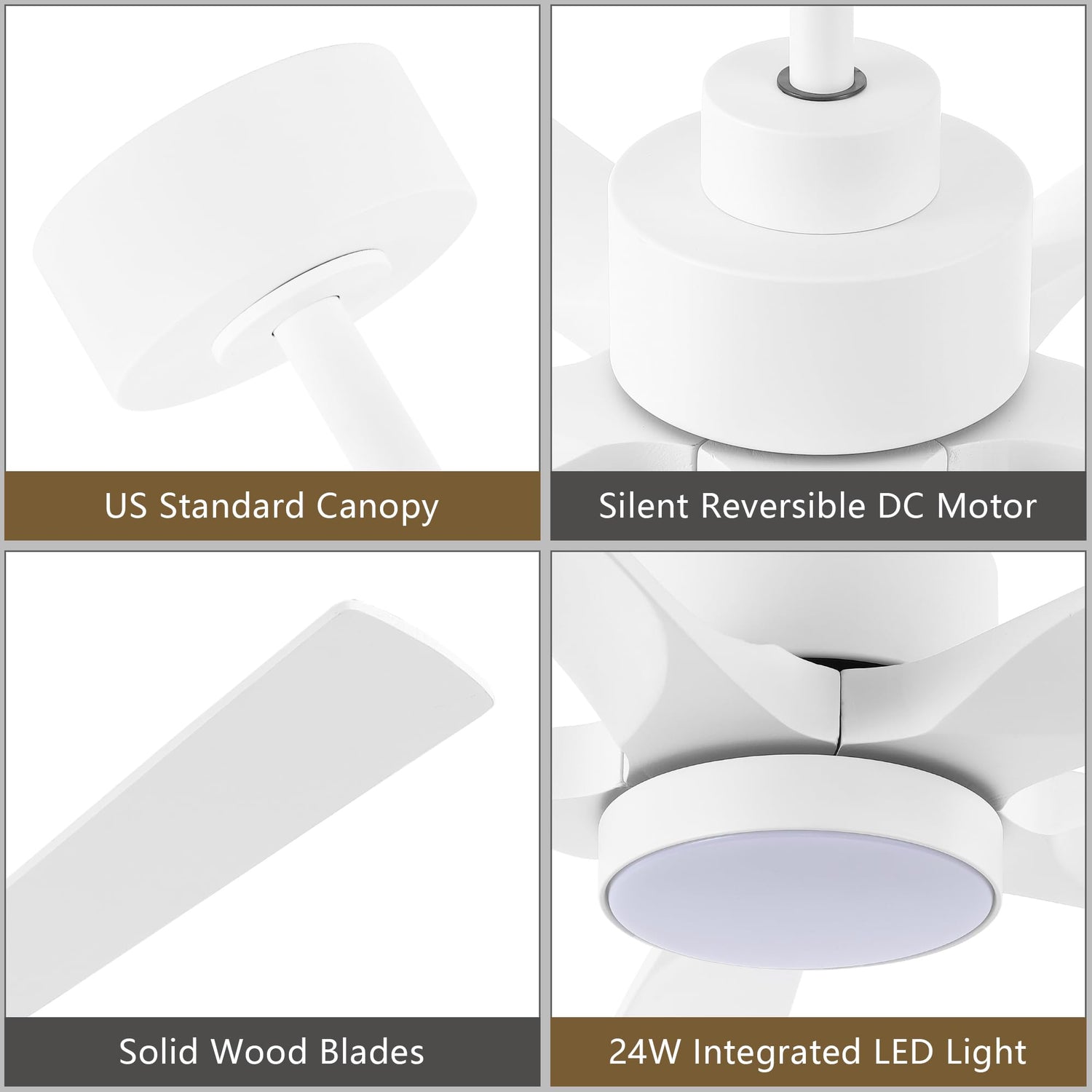 ELEHINSER 52" Modern Ceiling Fan with Light and Remote Control, 5 Solid Wood Blades 6-Speed Noiseless Reversible DC Motor, Ceiling Fan for Bedroom Dinning Living Room, White