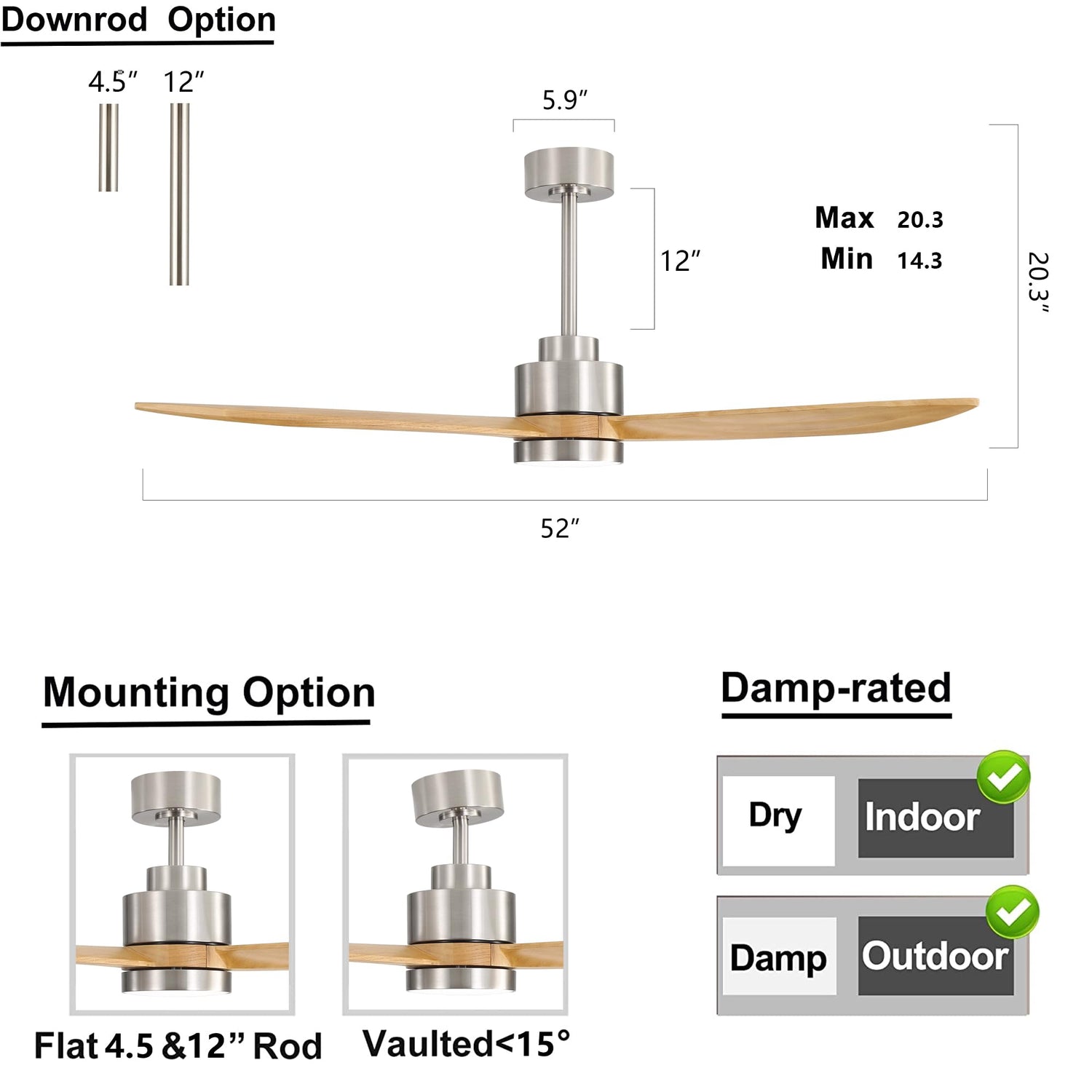 - ✔Modern Design : This 52-inch indoor ceiling fan with light is coated in nickel with 3 pieces of wood blades. Wood and metallic nickel color scheme makes the ceiling fan delicate and be of great taste.