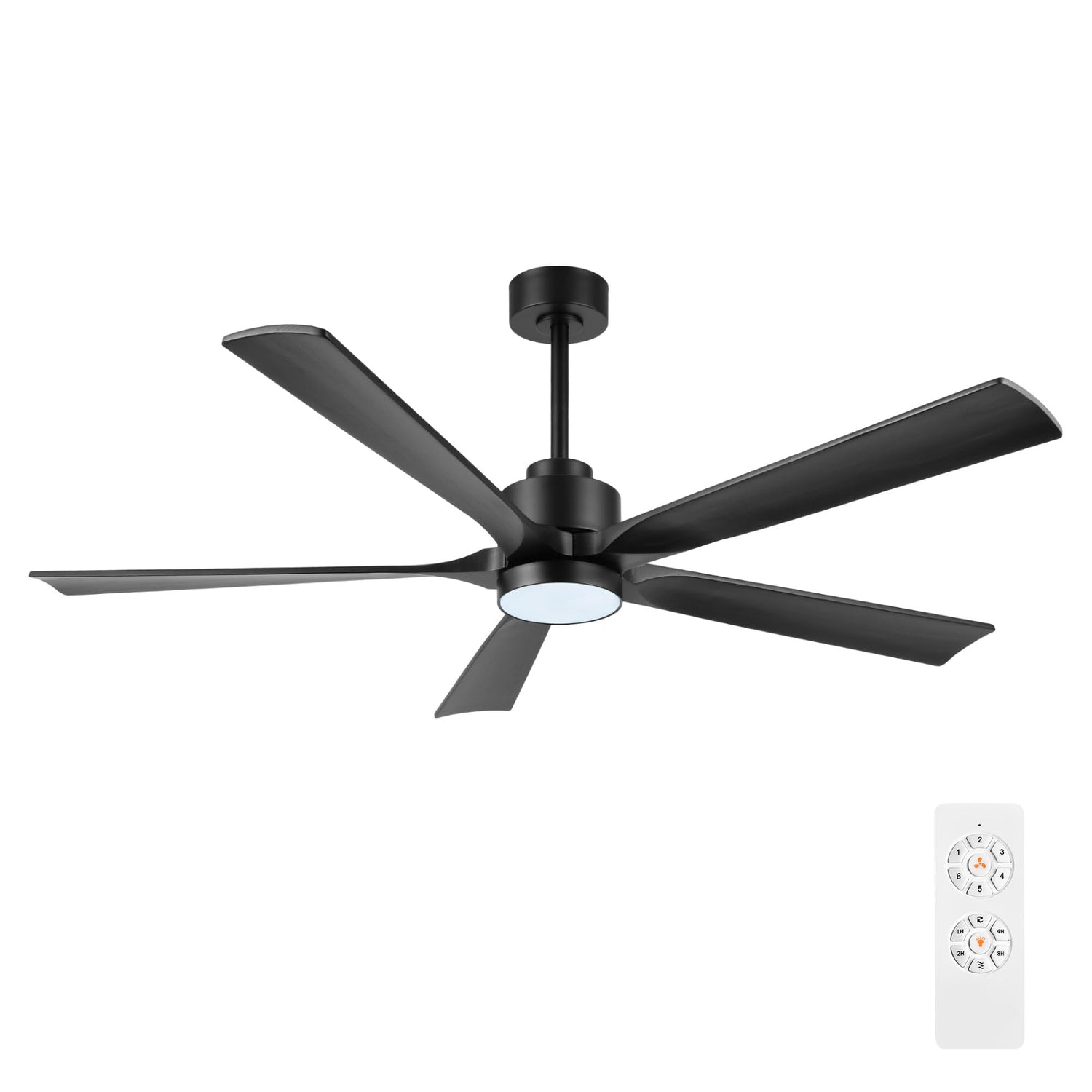 ELEHINSER 60" Modern Ceiling Fan with Lights and Remote Control, 5 Solid Wood Blades 6-Speed Noiseless Reversible DC Motor, Ceiling Fan for Bedroom Dinning Living Room, Black