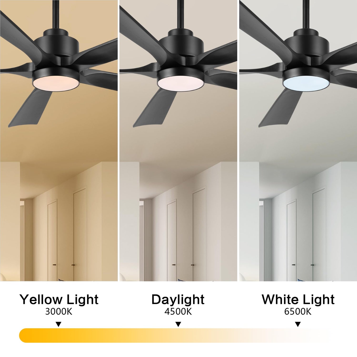 - ✔LED LIGHT: Integrated LED light source has 3 color temperatures (3000K/4500K/6500K) to meet the needs of different scenes. The fan as well as the light can be controlled separately.