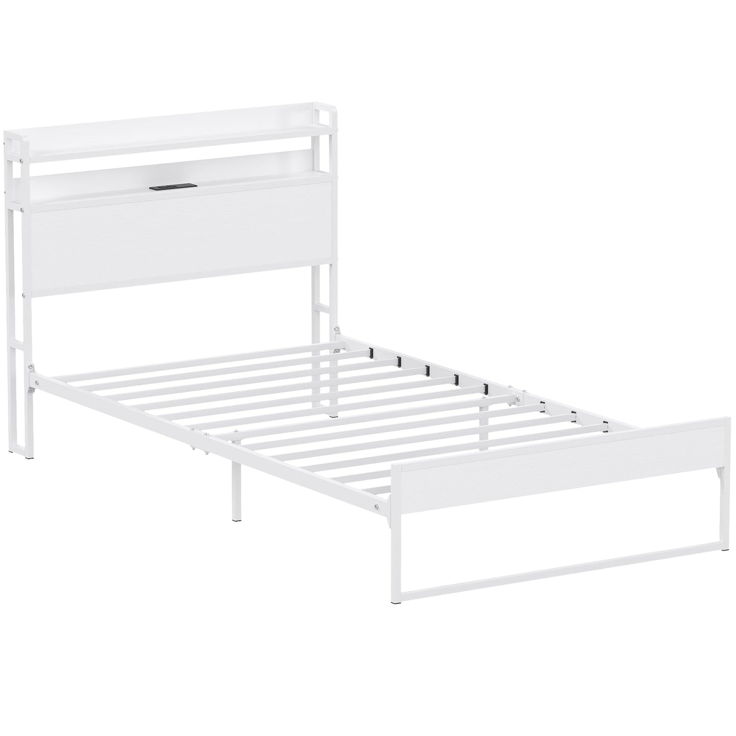 Elephance Twin Bed Frames with Charging Station and Storage Headboard, No Box Spring Needed, Noise Free, Easy Assembly