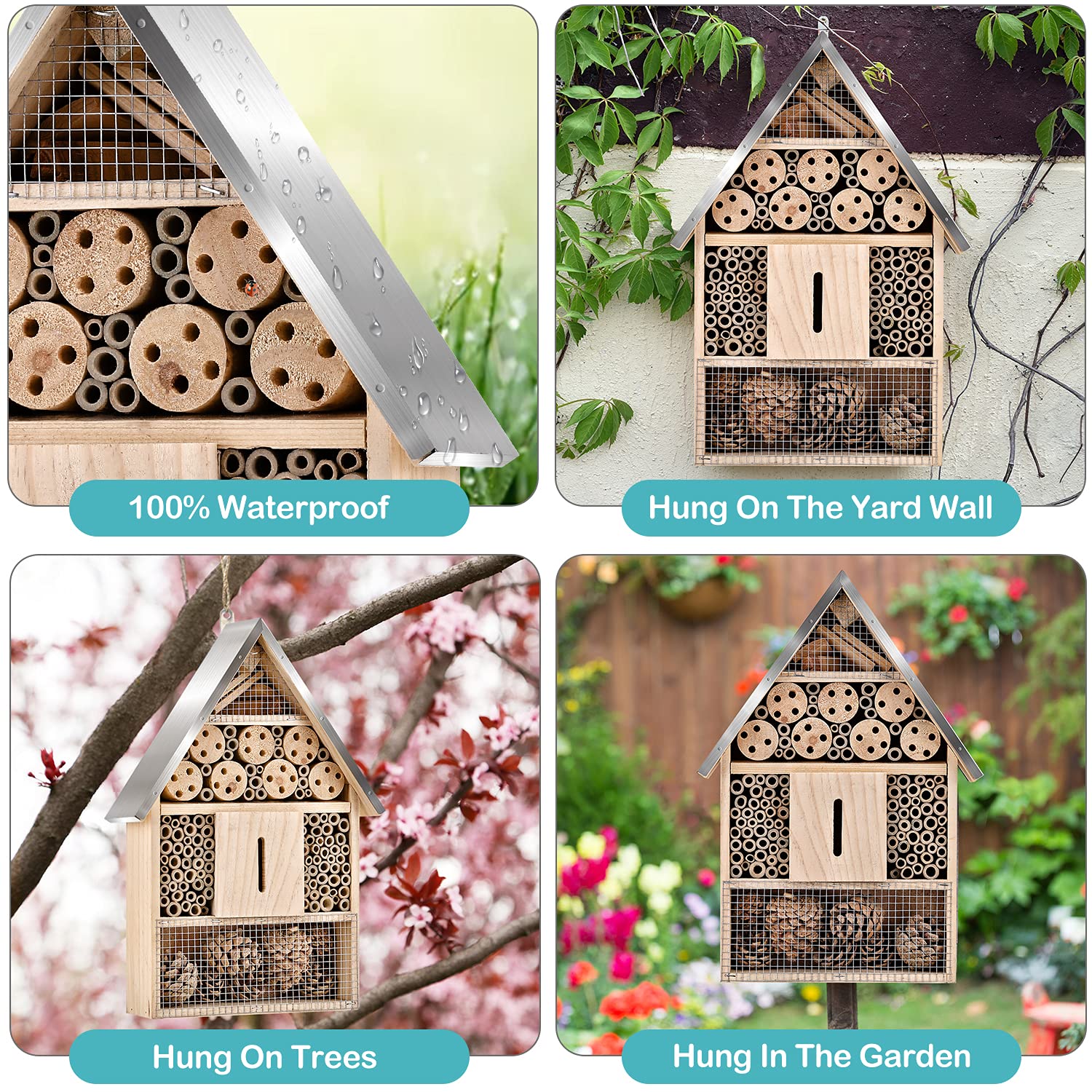 - The mason bee house has more holes to accommodate for more Butterflys, bees and ladybugs to habitat, hatcheries or shelter from rain.
