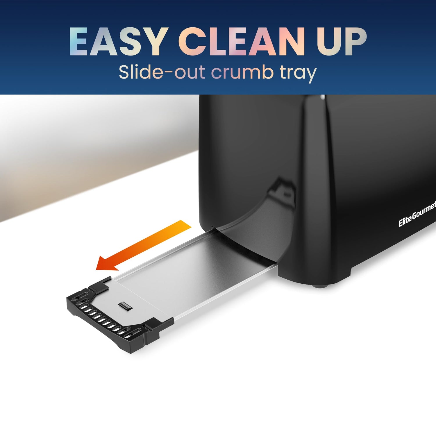 - COOL TOUCH: With easy-to-use push-down toasting lever and non-slip feet. The swing-out crumb tray has a simple wipe-away surface for quick cleaning.