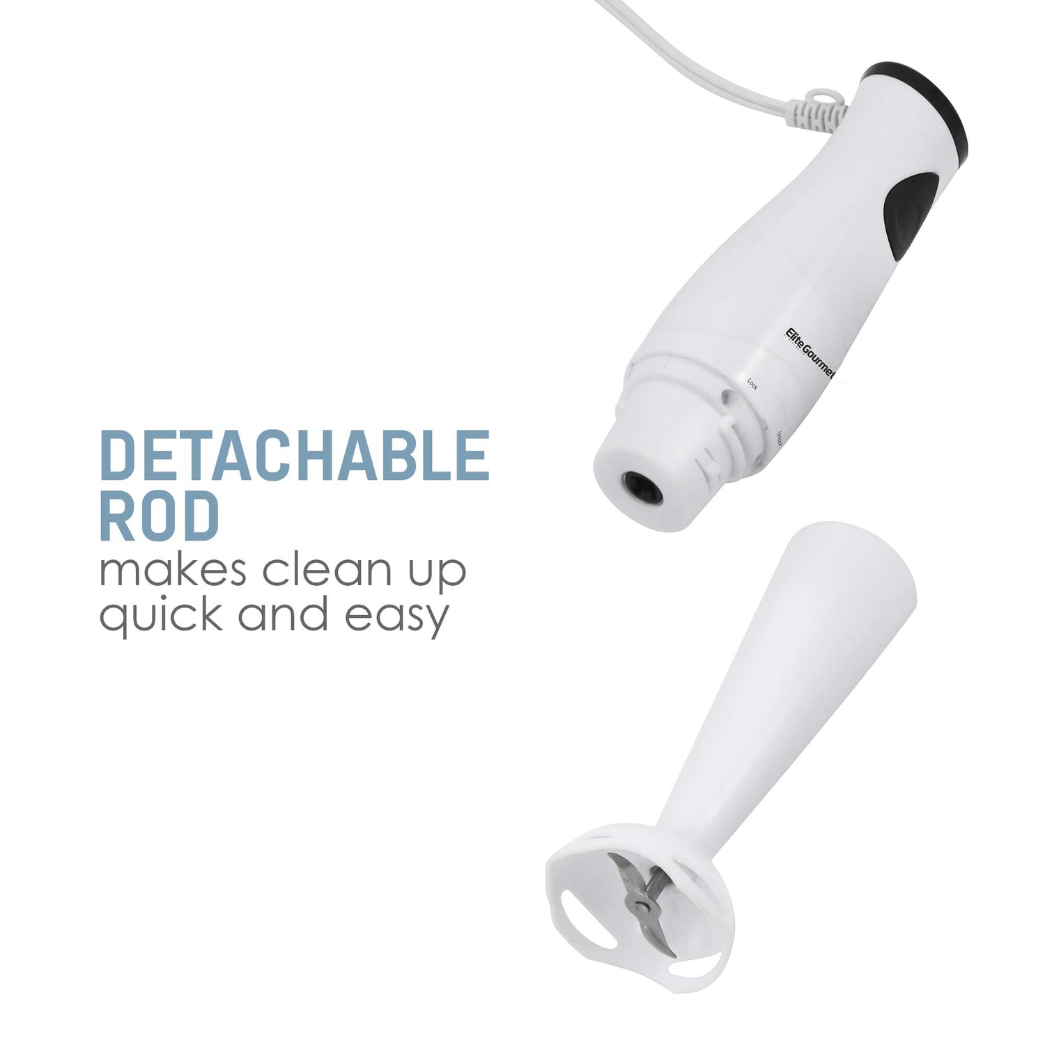 Elite Gourmet EHB-2425X Electric Immersion Hand Blender Stick, Mixer, Chopper, 1-Touch Control Multi Purpose, 150 Watts, For Soups, Sauces, Baby Food, White