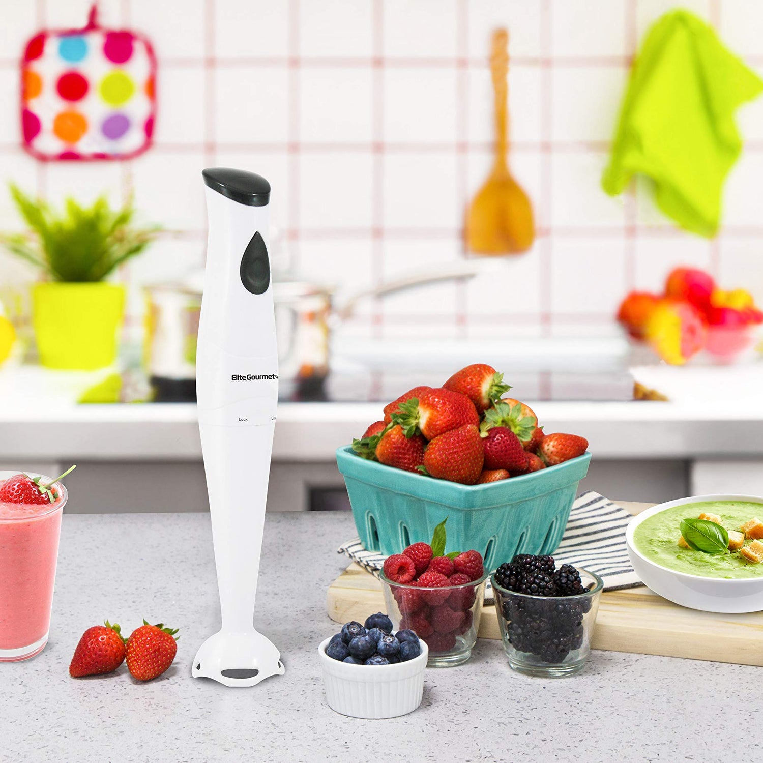 Details: Blending is now easier than ever with the Elite Gourmet Hand Blender. The powerful 150-watt motor allows you to whip egg whites, blend soups, mix salad dressing, and even puree baby food. Its thoughtful "stick" design allows you to blend right in the bowl, pot or pitcher.