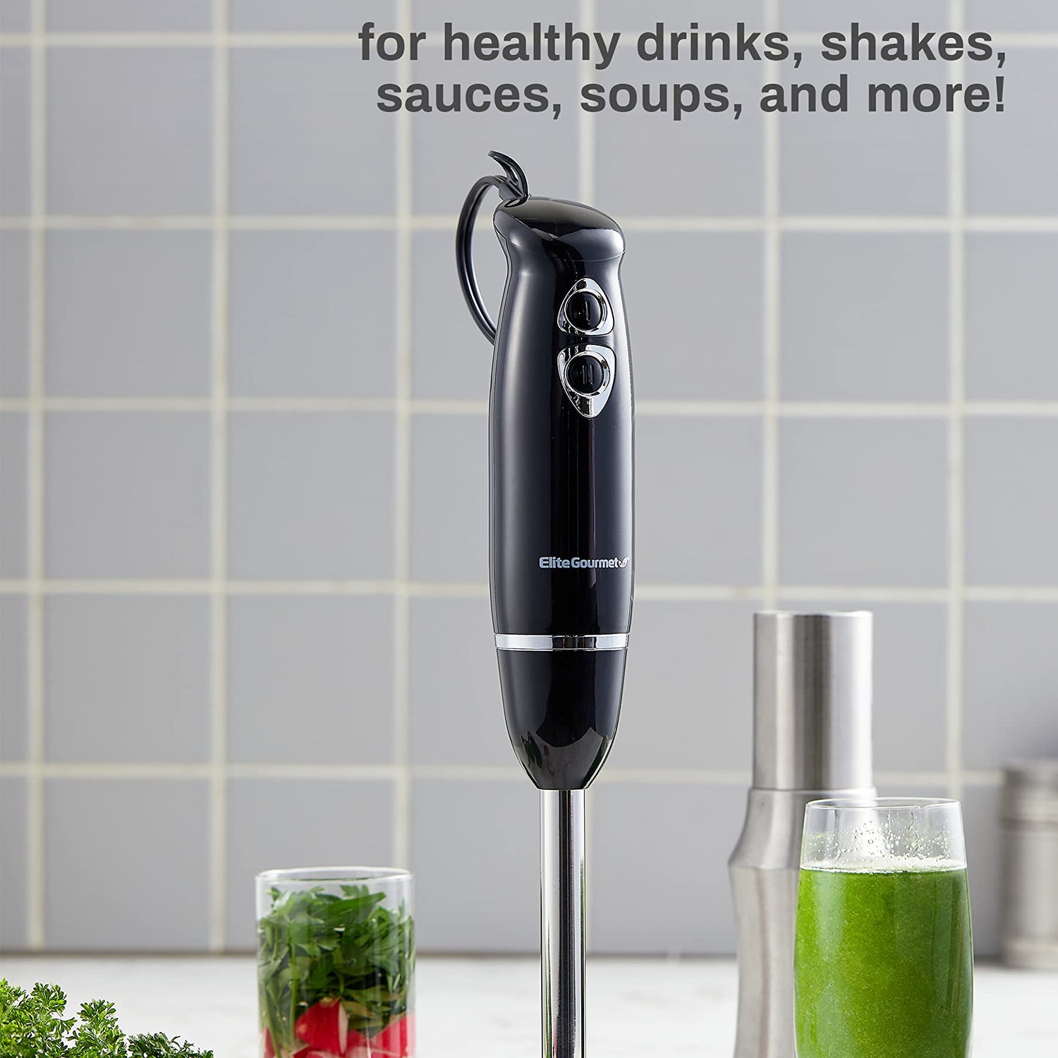 Elite Gourmet EHB1015 Immersion Hand Blender 500 Watts 2 Speed Mixing with Stainless Steel Blades, Detachable Wand Stick Mixer, Smoothies, Baby Food, Soup, Black