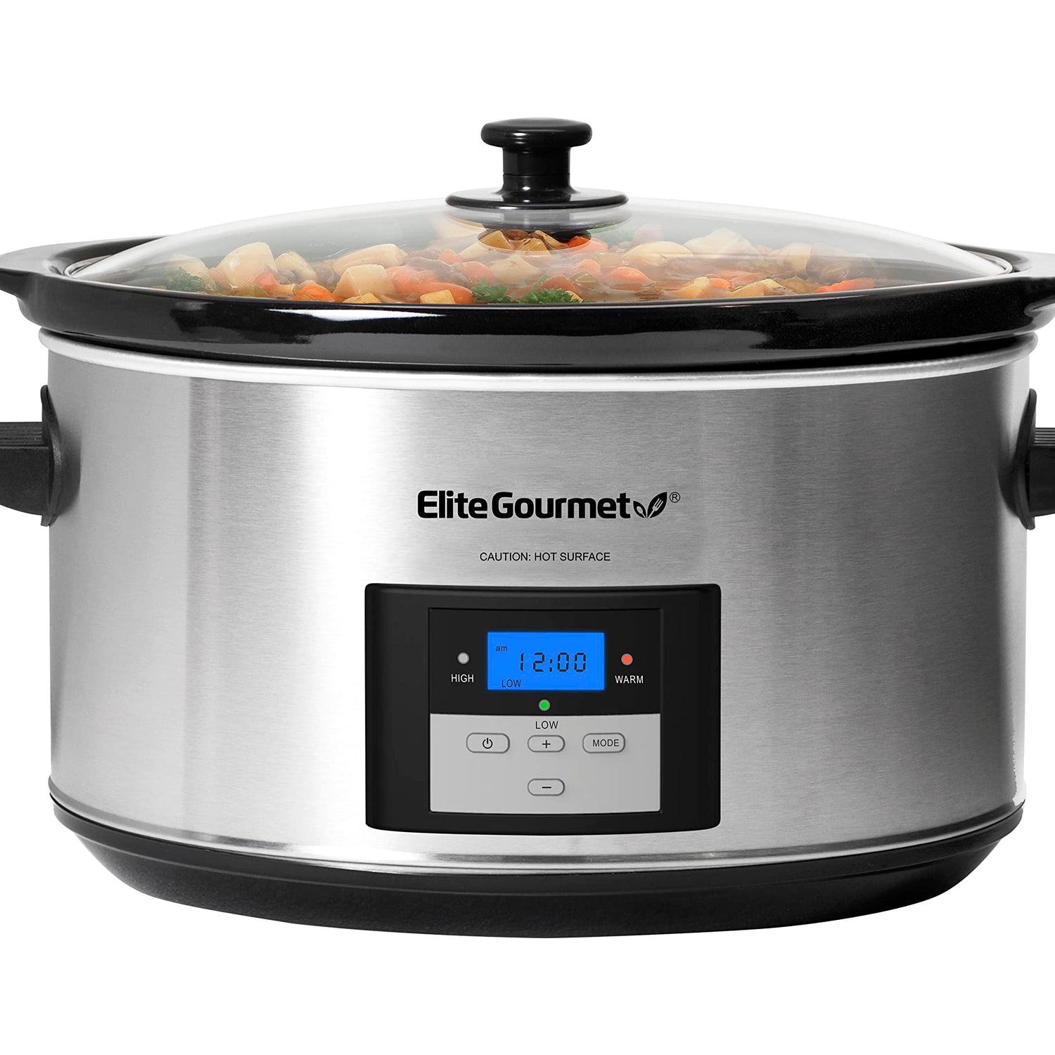 Details: Preparing meals for the family has never been easier when using the Elite Gourmet 8.5-Qt. Programmable Slow Cooker. It has been designed for today’s family that is always on the go. You will have ultimate cooking control and flexibility with the 20-hour advanced programmable timer to include Low-Medium-High temperature controls settings. Your meal will be ready when you are! An 8.5-qt. oval removable stoneware pot that nicely accommodates anything from vegetarian stew, grandma's pot roast, soups, casseroles, curries, and more. The super-sized 8.5-qt. stoneware pot is extra-large and due to its oval shape, you can slow cook those extra large cuts of meat ensuring there is always enough to go around. The appliance delivers consistent, even heat, while its clear tempered-glass lid traps in moisture and nutrients for delicious results while allowing a clear view of the cooking cycle. Attractively housed in brushed stainless steel with black accents, it is a great addition to any kitchen. Your family will love it and so will you!