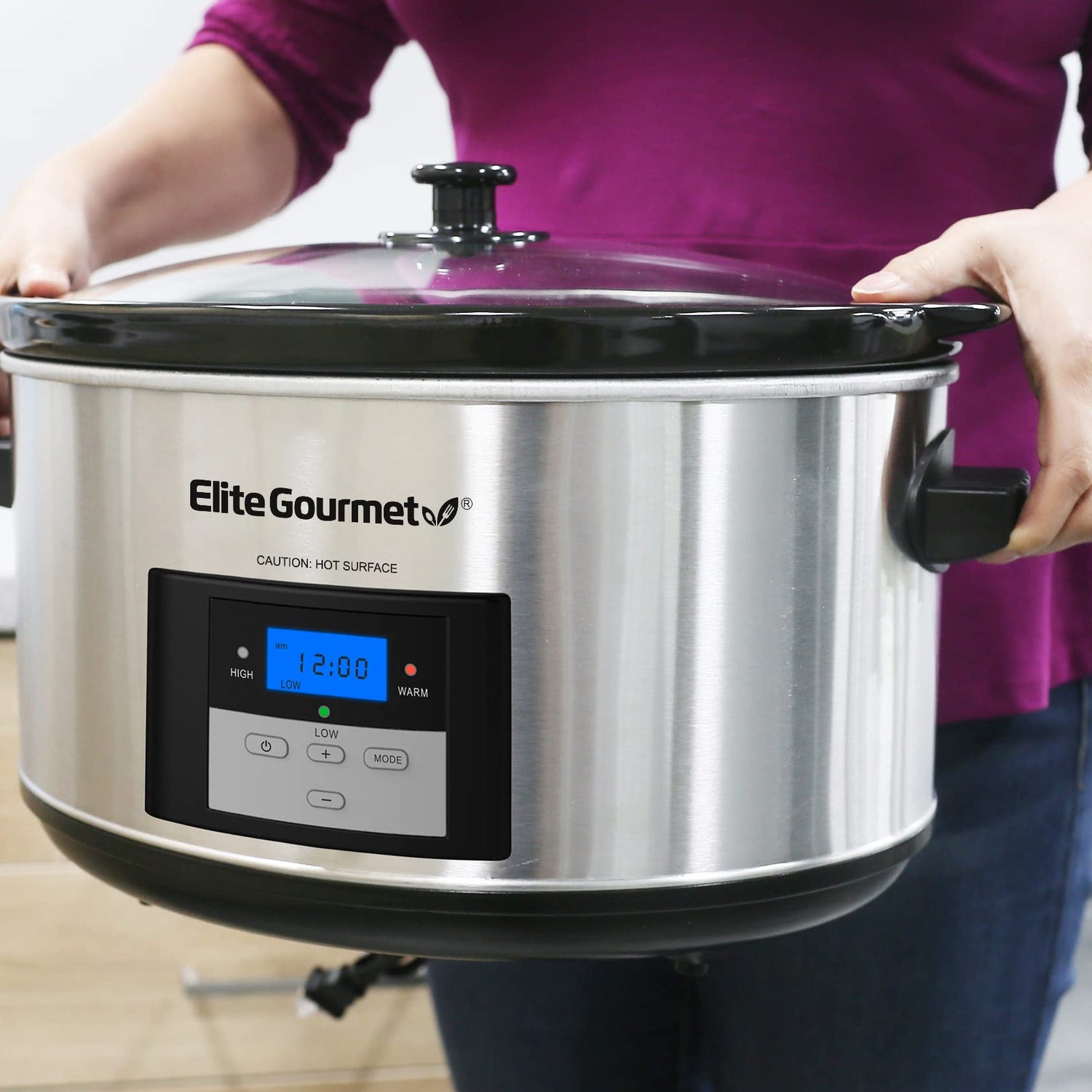 Elite Gourmet MST-900D 8.5Qt Digital Programmable XL Jumbo Slow Cooker, Adjustable Temp, Entrees, Sauces, Stews & Dips, Dishwasher Safe Glass Lid & Crock, Stainless Steel