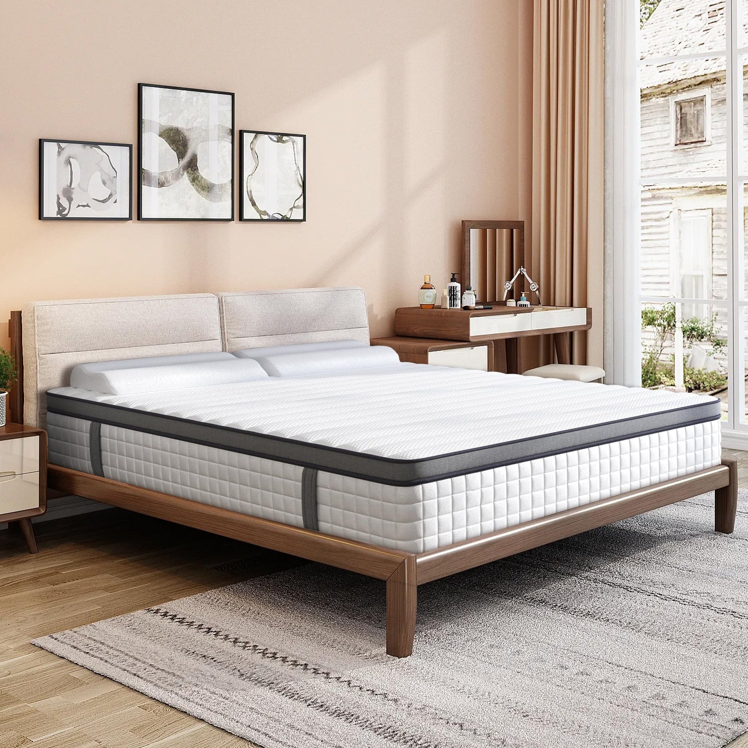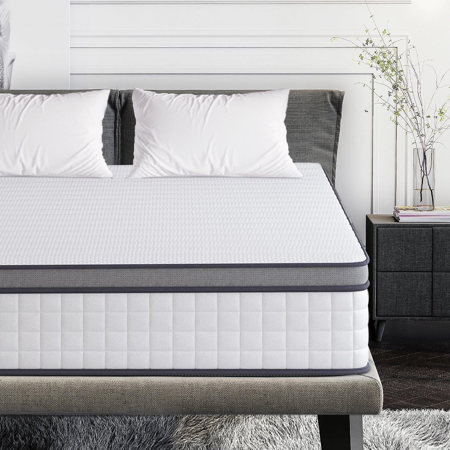 Details: 12 inch full size hybrid mattress is designed with independent pocket spring structure to provide good support for your head, neck, waist and legs.