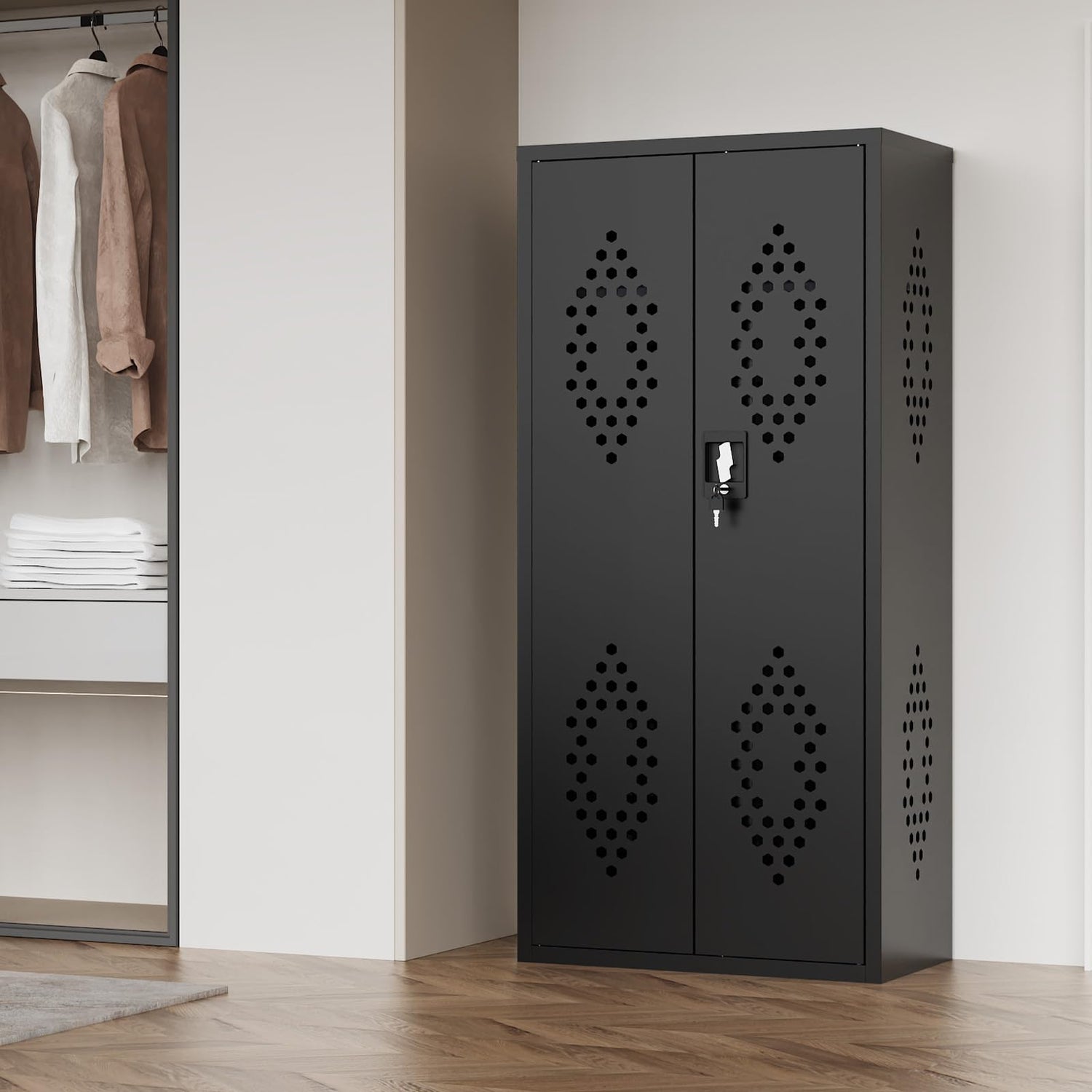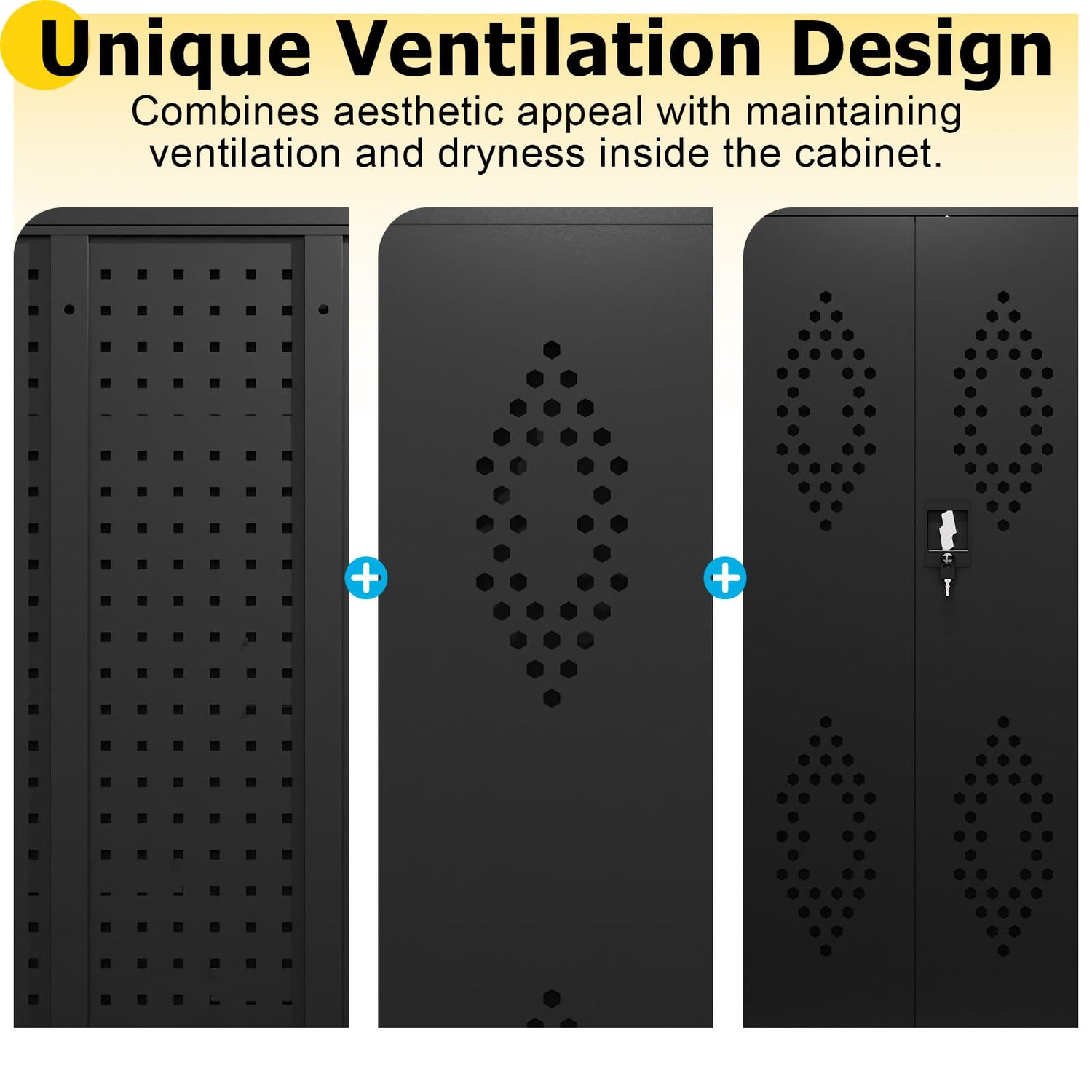 - 【Distinctive exterior design】Gun safe for home rifle and pistols features an innovative exterior design that seamlessly integrates with your home decor, combining aesthetic appeal with enhanced storage functionality. The hexagonal vent openings on the front and sides are arranged in a diamond pattern, ensuring proper ventilation while adding visual interest to the cabinet.