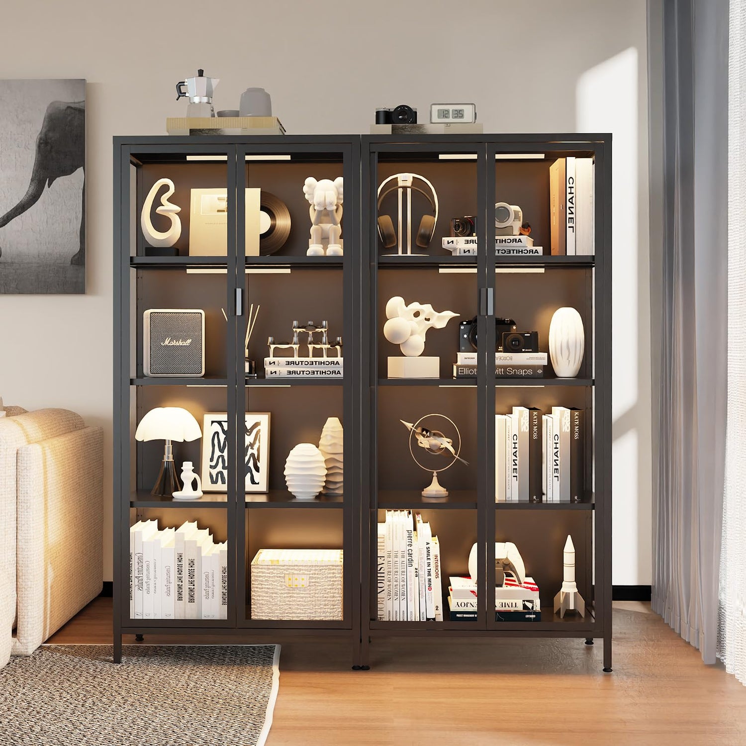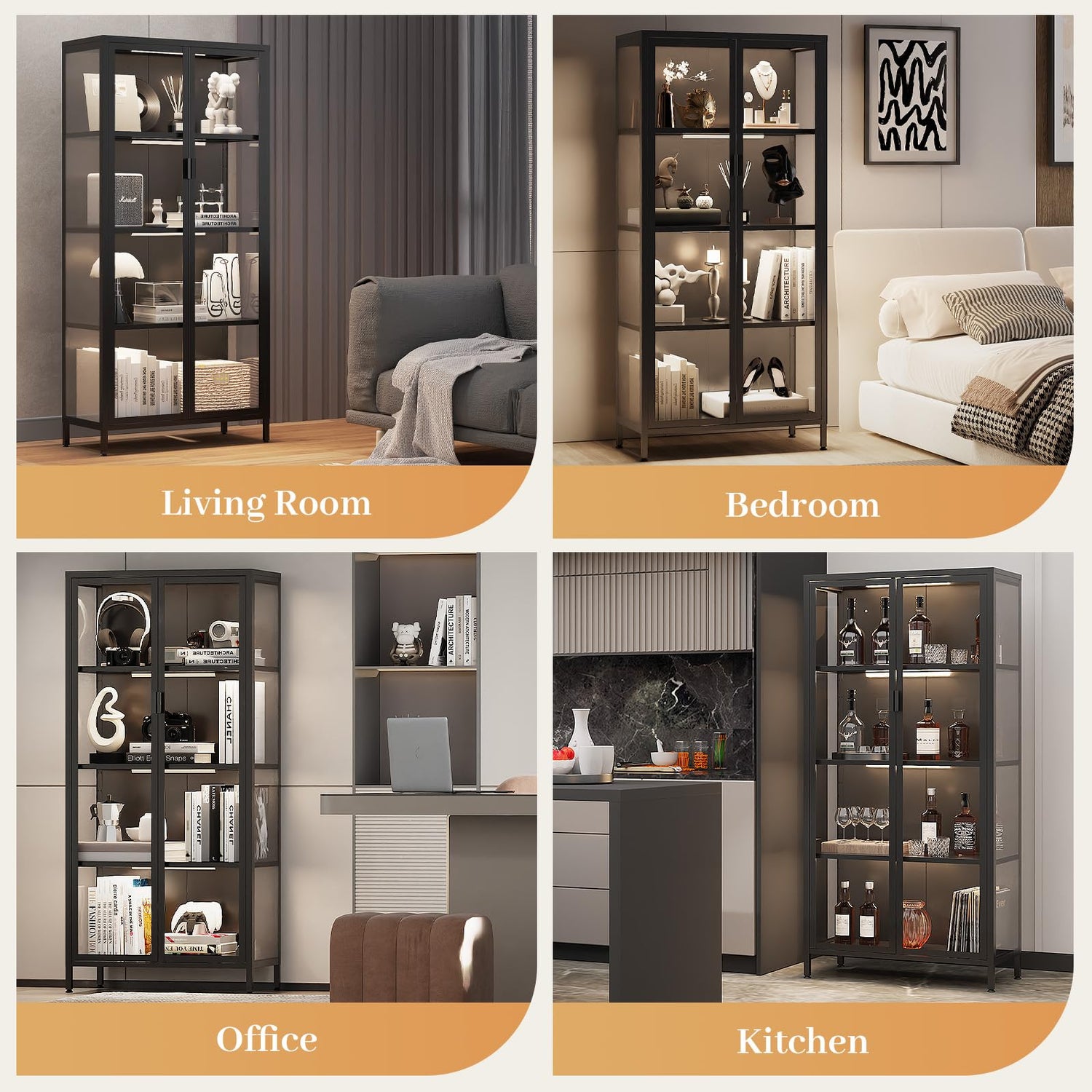 - Safe and Sturdy Material:Glass display cabinet is made of all-steel construction, which is not only safe and durable,and provides great stability. Display cabinets side panels and doors are made of sturdy and stamping-resistant 3C tempered glass, and the high-definition display effect can show the collection inside the cabinet at a glance, making it easy for us to find and take the items.Ensuring safety while showcasing your luxury collectibles, model sets, or wine collection.
