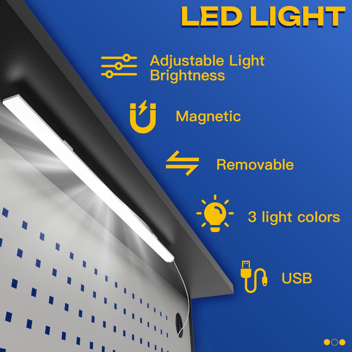 - 【Adjustable light】LED lights are available in three color temperatures (warm, neutral and cool) with adjustable brightness for welding, woodworking or repair work. LED lights on the workbench with drawers are magnetically mounted and can be readily moved into position as required, allowing you to focus on details with integrated lighting to eliminate shadows in the dark.