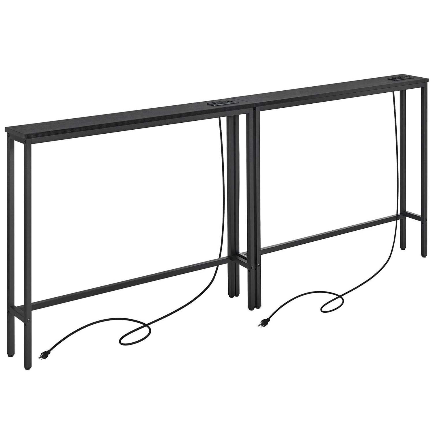 ELYKEN 2 Pack 5.9" Narrow Console Sofa Table with Power Outlets, 5.9" Dx39.4 Wx31.1 H Long Black Behind Couch Table with Metal Frame and Charge Station with 6.5’ Extension Cord