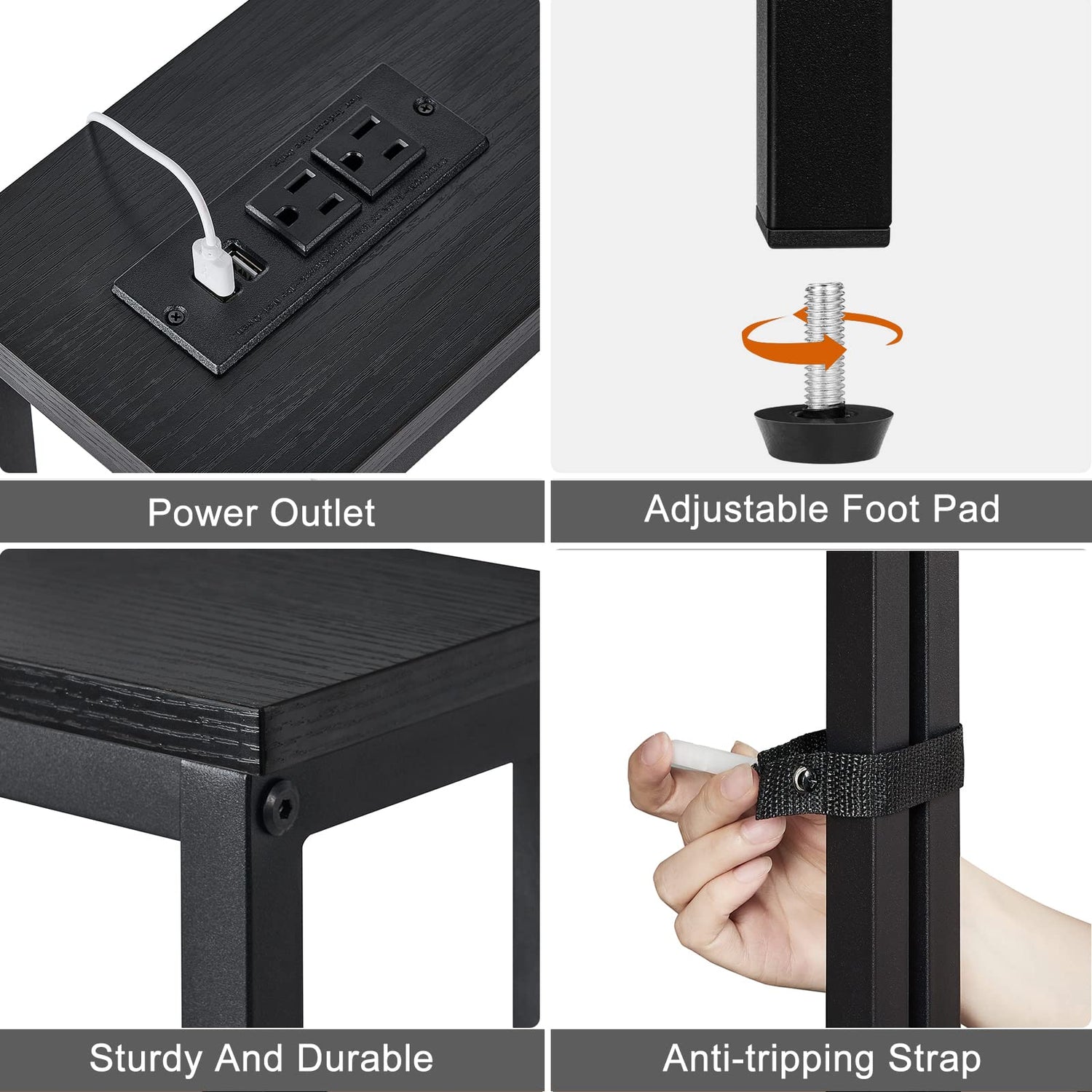 - Back Sofa Table with Outlets: The narrow long table with 2 standard 120VAC outlets, 2 USB ports and 6.5 feet long power cord to rescue the socket behind the sofa to charge the laptop/mobile phone
