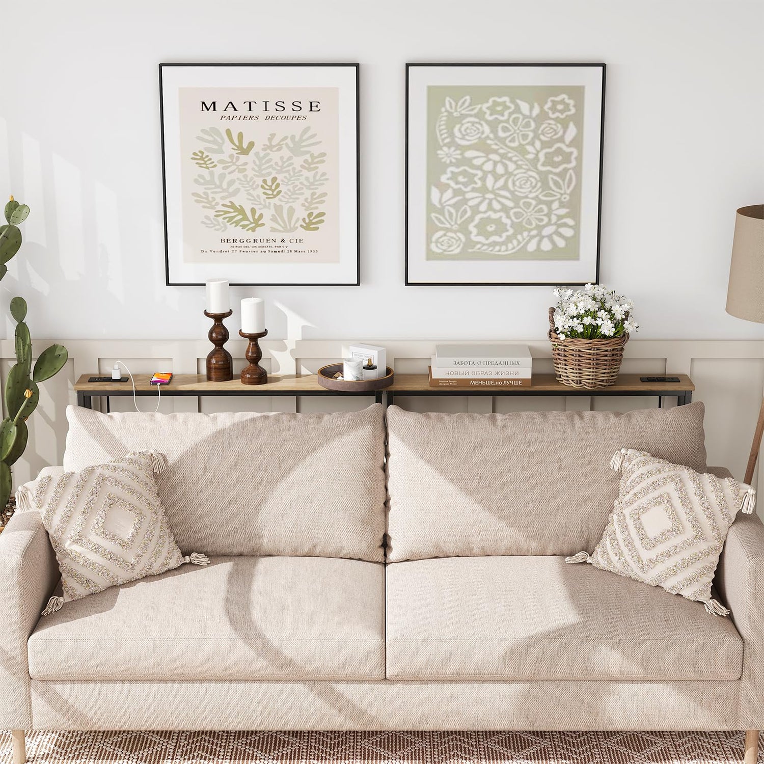 - Back Sofa Table with Outlets: The narrow long table with 2 standard 120VAC outlets, 2 USB ports and 6.5 feet long power cord to rescue the socket behind the sofa to charge the laptop/mobile phone