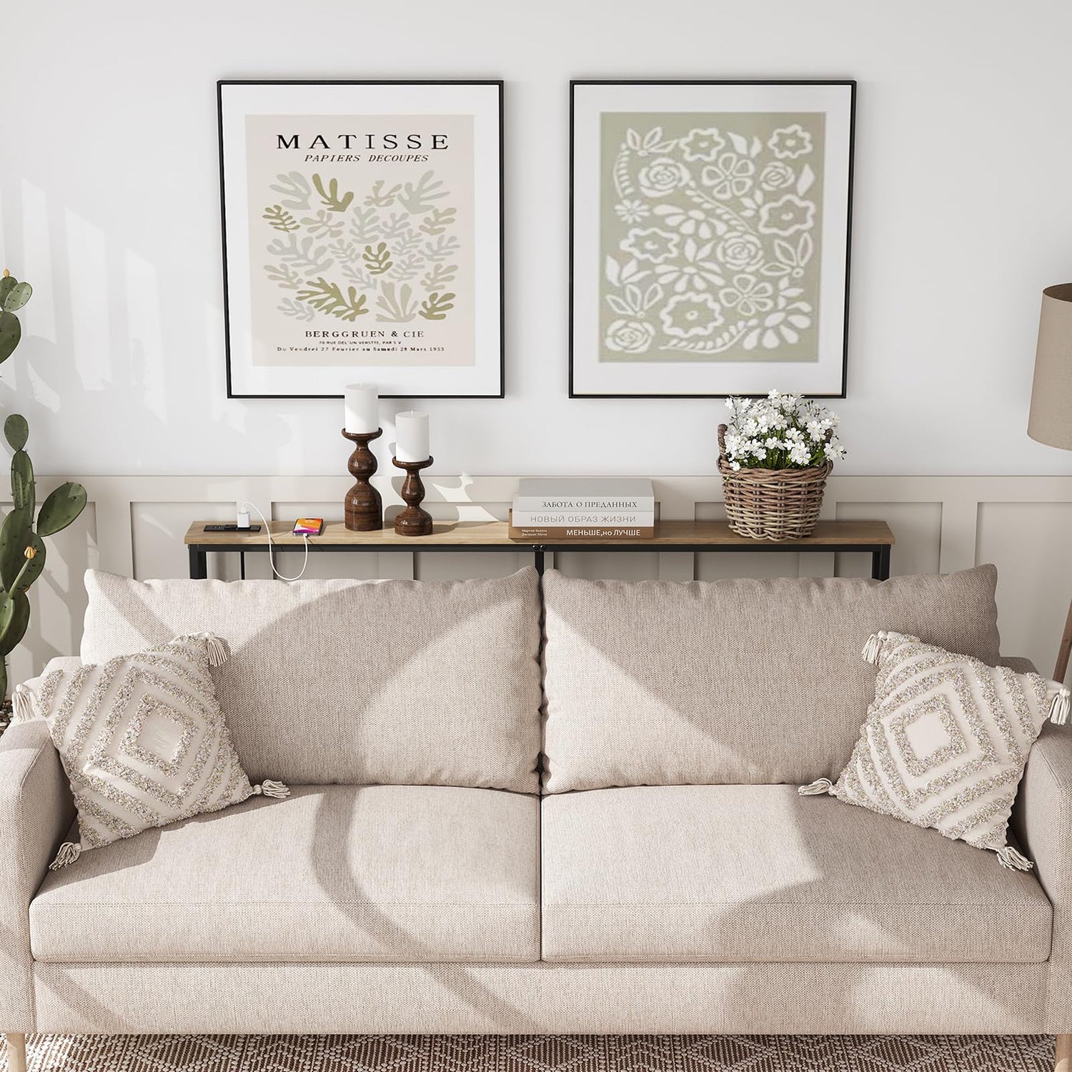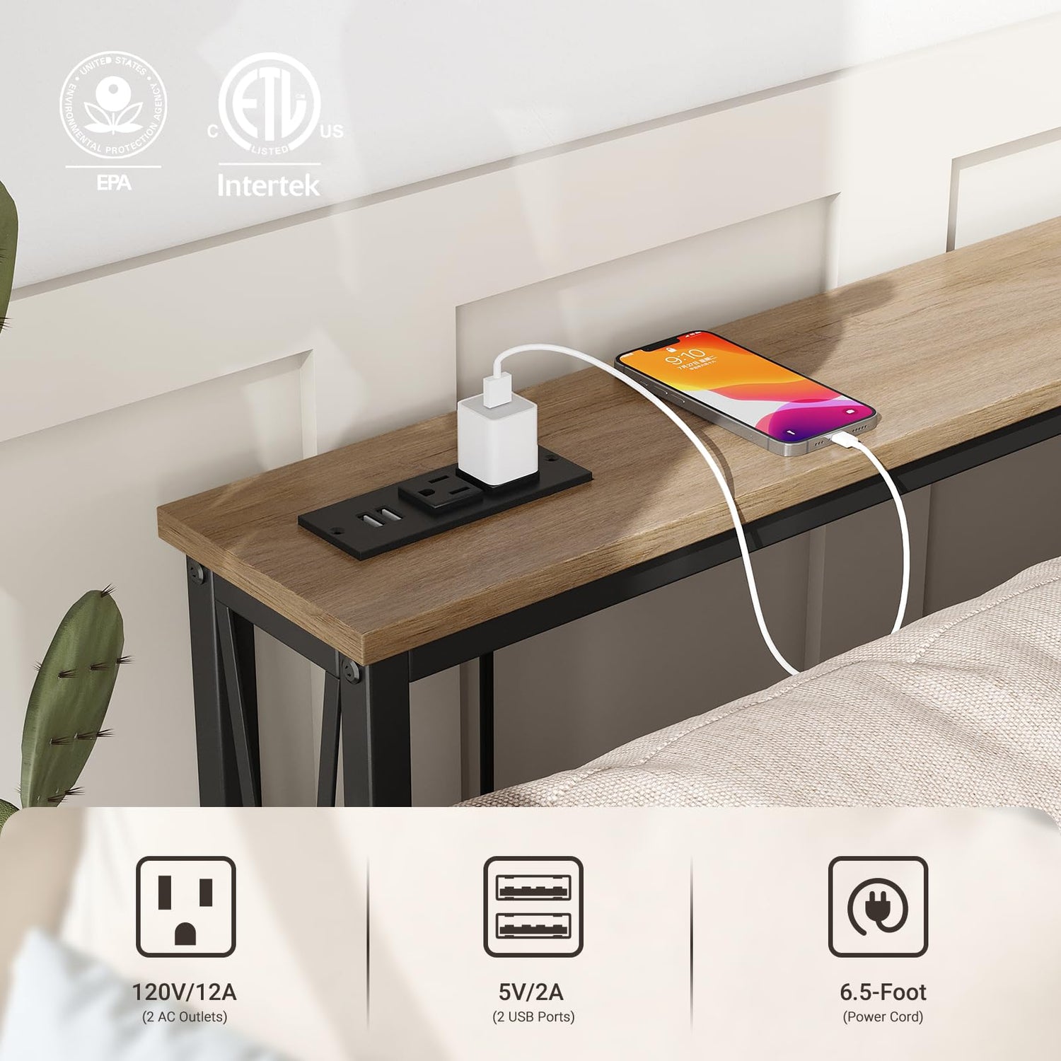 - Sofa Table with Built-in Outlets: Equipped with 2 standard 120VAC outlets and 2 USB ports on each side, along with a 6.5’ long power cord, this console table is designed to rescue you from the inconvenience of an inaccessible outlet behind your sofa, and then you can effortlessly power up your phone, tablet, headphones, and more—all within arm's reach, allowing you to fully indulge in your leisure time on the sofa