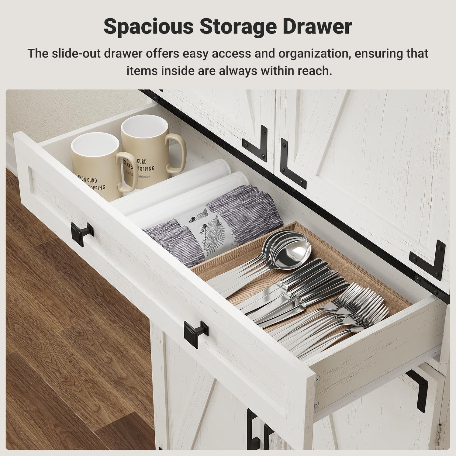 - Kitchen Pantry with Large Storage Space: This large wooden kitchen food cabinet comes with 4 door storage shelves for spice bottles, cans, olive oil; 3 pull-out storage dividers at the bottom can easily organize and take out items in the drawer, and there are two adjustable shelves on the top of the cabinet to accommodate items of different heights for flexible storage, perfect for any room in your home.