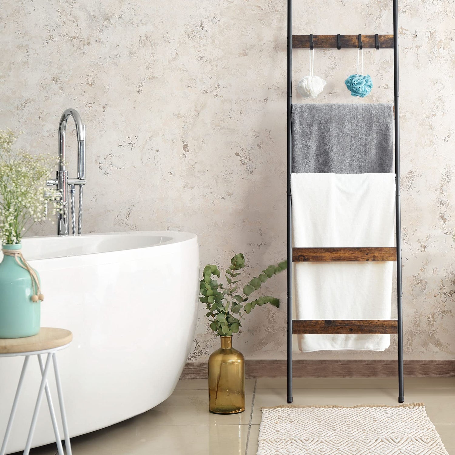 - Beautifies Your Home: Ideal for displaying throws, quilts, scarves, newspapers, magazines, 5 tier ladder blanket holder turns your clutters into decor and adds luster to your living room, bathroom and cloakroom