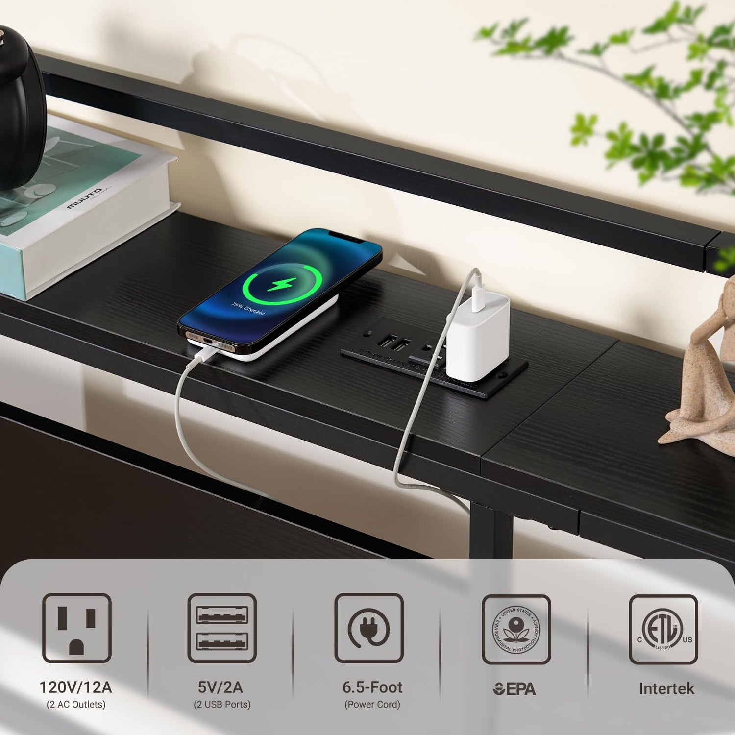 ELYKEN King Size Headboard with Power Outlet & LED Strip Light - Versatile, Easy Assembly in Black