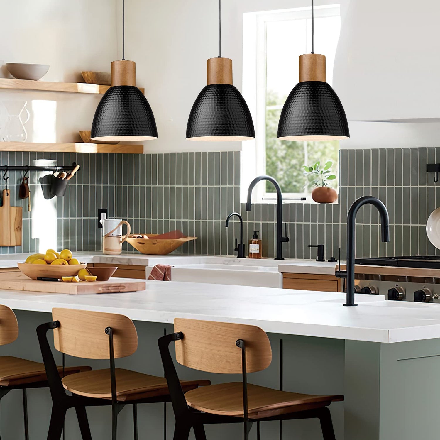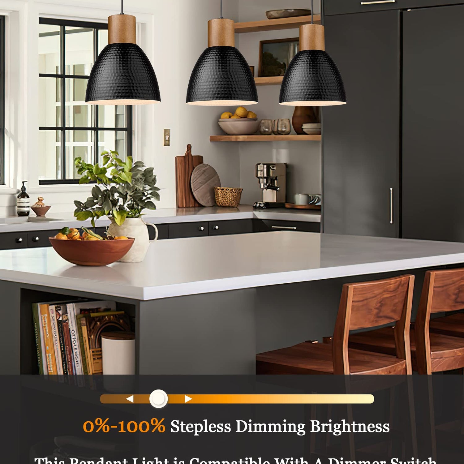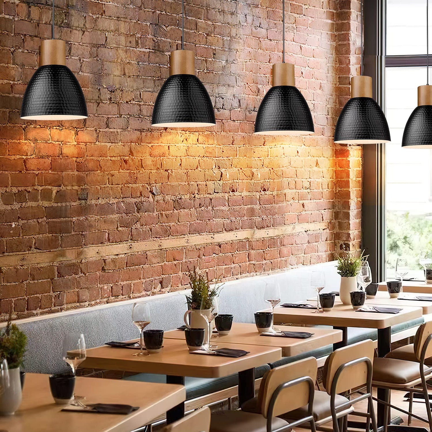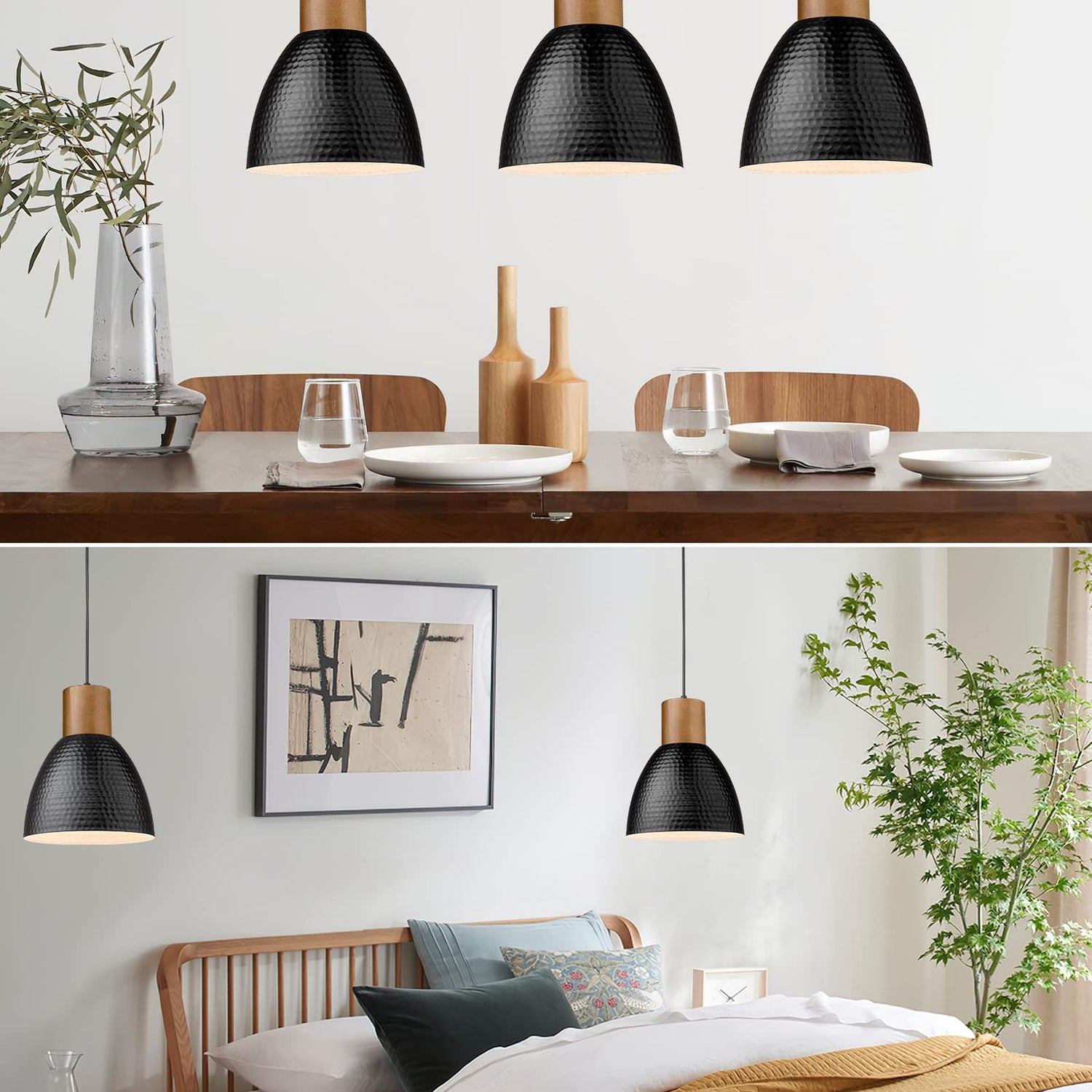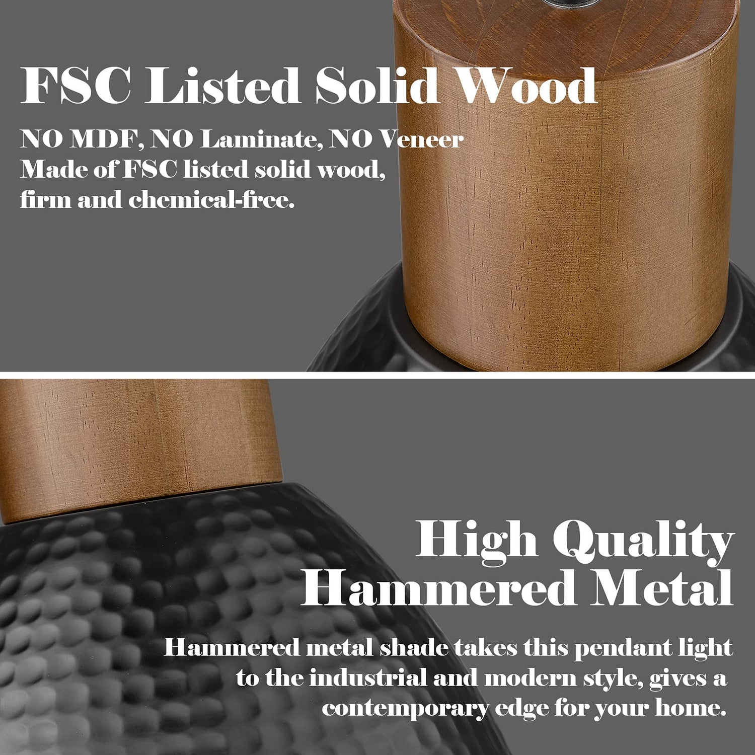 - 【Patent Design Pendant Light】①With over 20 years of illumination production experience and a professional design team, we have high strict control over product quality and detail & getting many patents for appearance design and functions at the same time. ② Rubber wood with hammered metal shade pendant light provides a modern industrial feeling. Ideal for kitchen, dining room, living room, office, coffee bar, bedroom, and beside nightstand. Add this modern industrial looking to your home now!