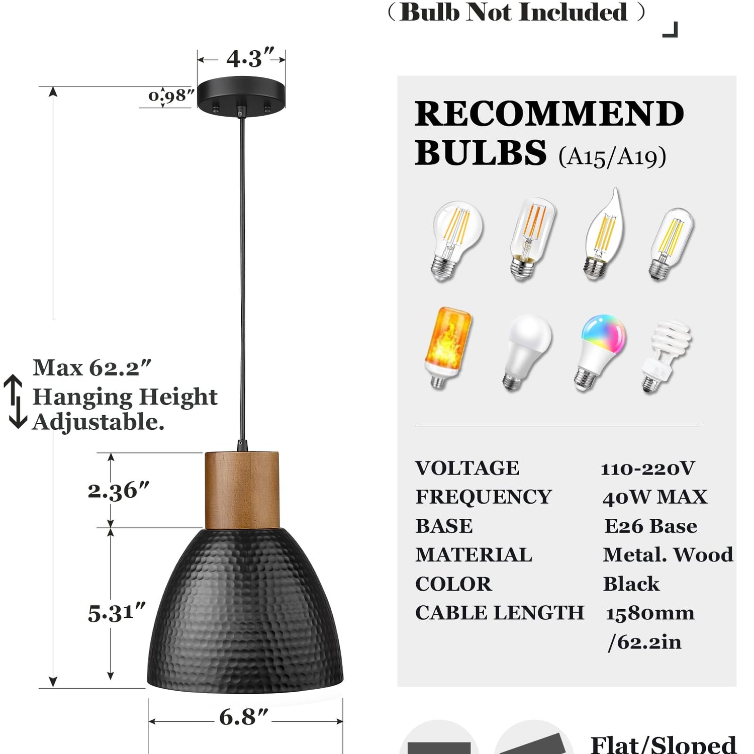 - 👍【Dimmable & Bulb Requirements & One Year Warranty】① ETL Listed, and cords are included for Height Adjustment. This hanging light fixture can be installed at any height of the ceiling and bevel. Supports any LED/CFL/Edison or other less than 40W bulbs with E26 Base. ❥When using dimmer and dimmable bulb can be dimmed (Bulbs NOT Included). ②We offer One Year Warranty to bring you a great value shopping experience. If you have any questions, please CONTACT US via the Amazon message box.