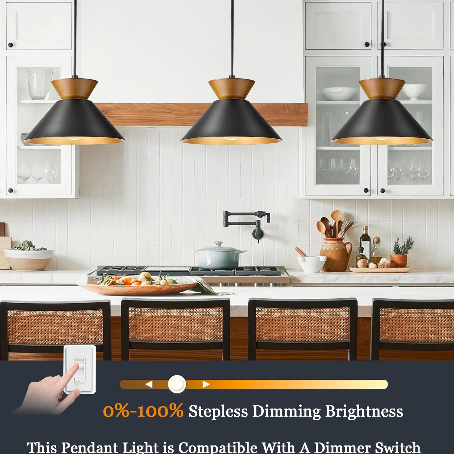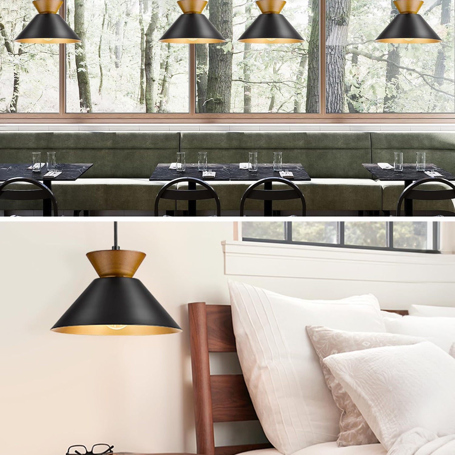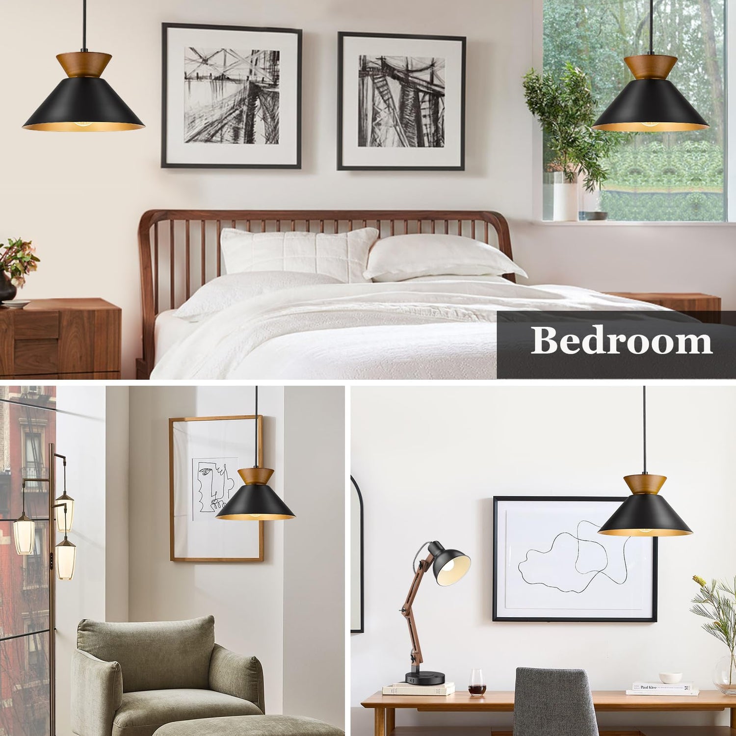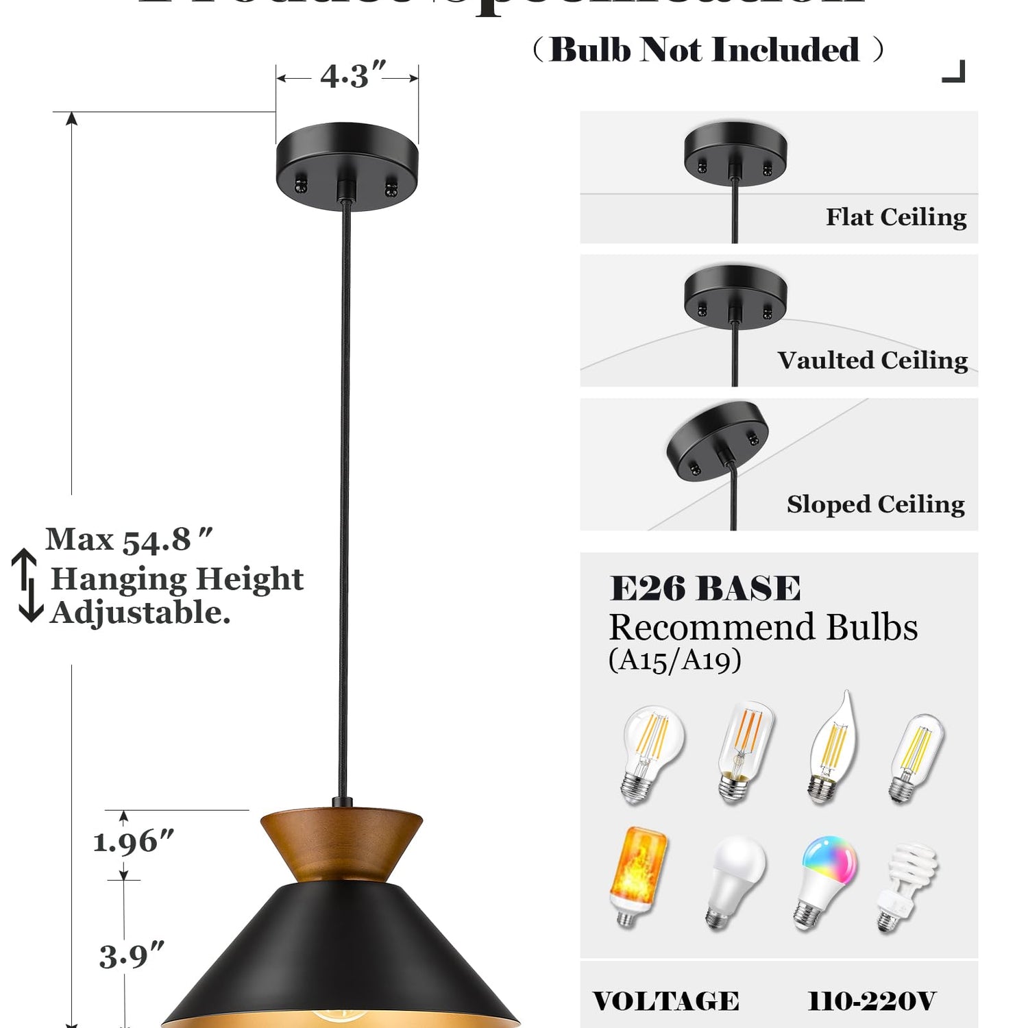 - 【Vintage & Industrial Pendant Light】 Solid Wood with matte black metal shade, copper tone interior modern pendant light is definitely the center of attention when placing 2 or 3 sets of this light on your kitchen island or dining table, hallway, bedroom, foyer, living room, office, coffee bar, and entryway. Add this vintage industrial looking to your home now!